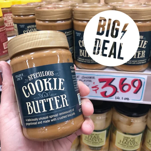 This speculoos cookie butter is usually Trader Joe’s number one selling item each year and for good reason. Not only is it delicious straight from the jar, but it’s price can’t be beat!