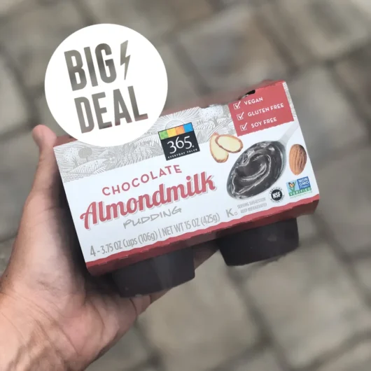 I love chocolate pudding and while there are a few other vegan brands out there, they’re at least $2 more than the value priced $2.99 Whole Foods 365 Everyday Value almondmilk pudding featured here. Top with a little vegan whipped cream and treat yourself knowing you’re tasting savings in every spoonful.