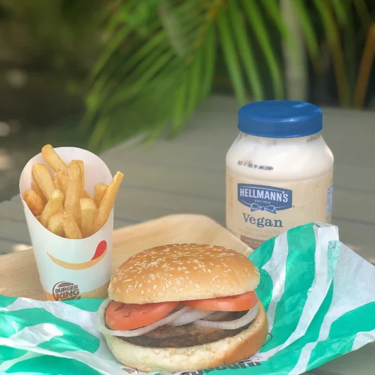 I know it’s cooked on the same equipment as the regular burgers and if it’s still the same method, it’s a conveyer belt not an actual grill or griddle. Not sure this makes it any better, but if you dine out in restaurants that are not 100% vegan, this is a common practice. Does cross contamination make you non-vegan? No, but some can’t handle it. If that’s you, then that’s your choice. I’ve been vegan for just about 25 years and as careful as I try to be, I also have to be realistic and I also have to eat with other non-vegans at restaurants they sometimes choose.