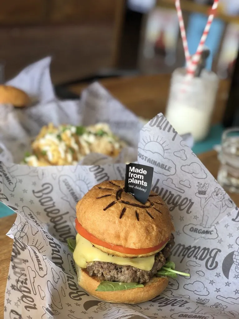 There’s a full list or burgers, fries and shakes like you would find at a traditional diner but one caught my eye that had a Justforall vegan egg on it. I knew I had to try it. The buns are a vegan brioche style and soft and delicious. We also got an order of loaded waffle fries and a peanut butter shake. I was disappointed that the shake had no whipped cream or sprinkles as advertised as I was looking for the perfect Instagram shot, but he explained they were out of it. Still, it was tasty and served with environmentally friendly paper straws.