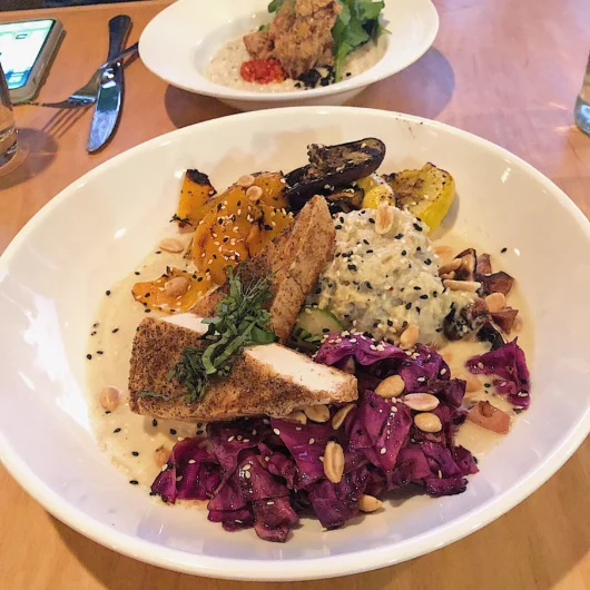 There are so many good places for vegan eats in Asheville but the premier restaurant has to be Plant. It’s a small place so reservations are recommended and we made two to make sure we’d not miss it. We were hoping their fall menu would be available because they make a risotto that’s incredible but alas, it was not meant to be. We had to suffer though some other amazing eats (don’t you feel badly for us?).