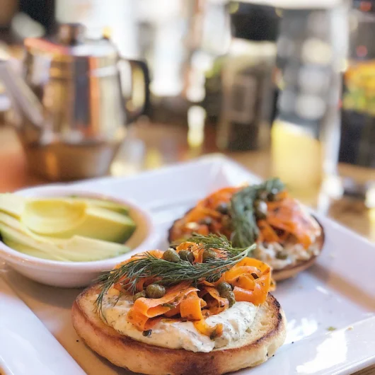 We went for brunch since it was Sunday and of course I scanned the menu intently before going and surprisingly chose an item I normally might not have. It was carrot vegan lox on a homemade everything bagel. I went for the side of avocado which I highly recommend.