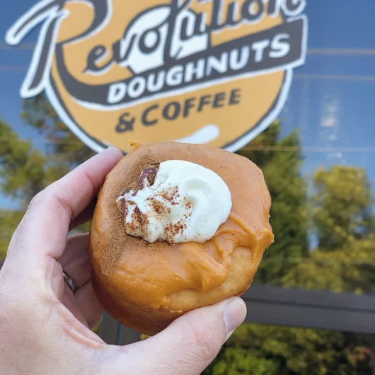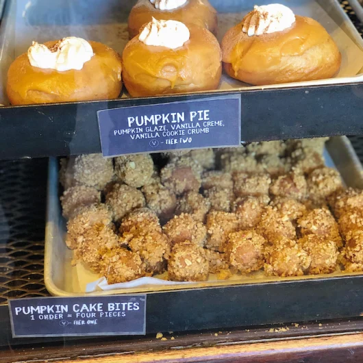 First stop was Revolution Donuts in Atlanta because they have a bevy of vegan options. The flavors rotate somewhat daily but I saw the day I went that they would have the vegan pumpkin pie donut so of course that was my first choice. Their donuts are pretty tasty and I saw pumpkin cake donut holes were also vegan so I had to get those too especially since I found out they could be included in the half dozen special!