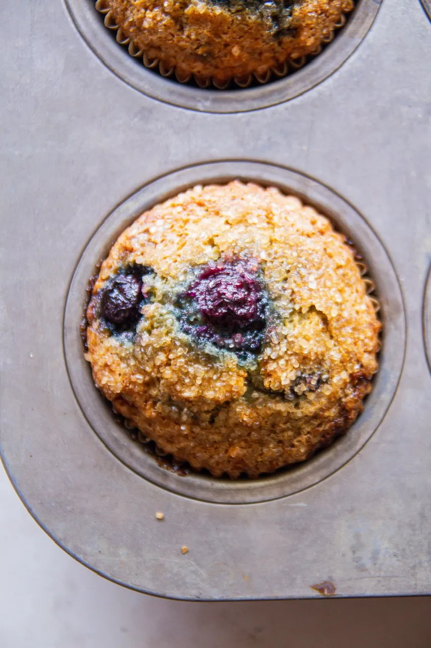 I’ve been making a version of these blueberry muffins since the 90s. The original recipe was much higher in fat and I felt I could make a better version, so after trial and error, I present you with the ultimate vegan blueberry muffins!