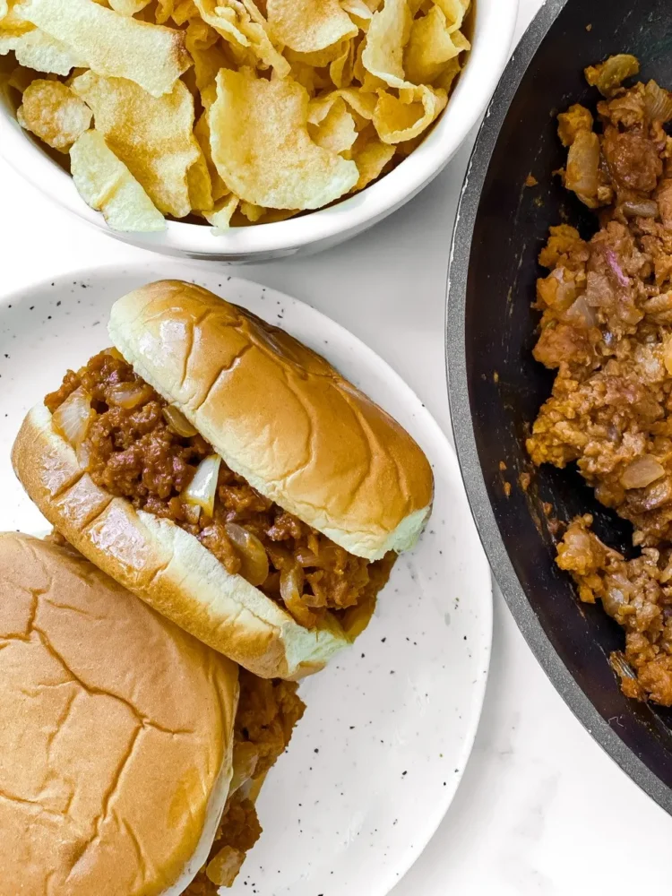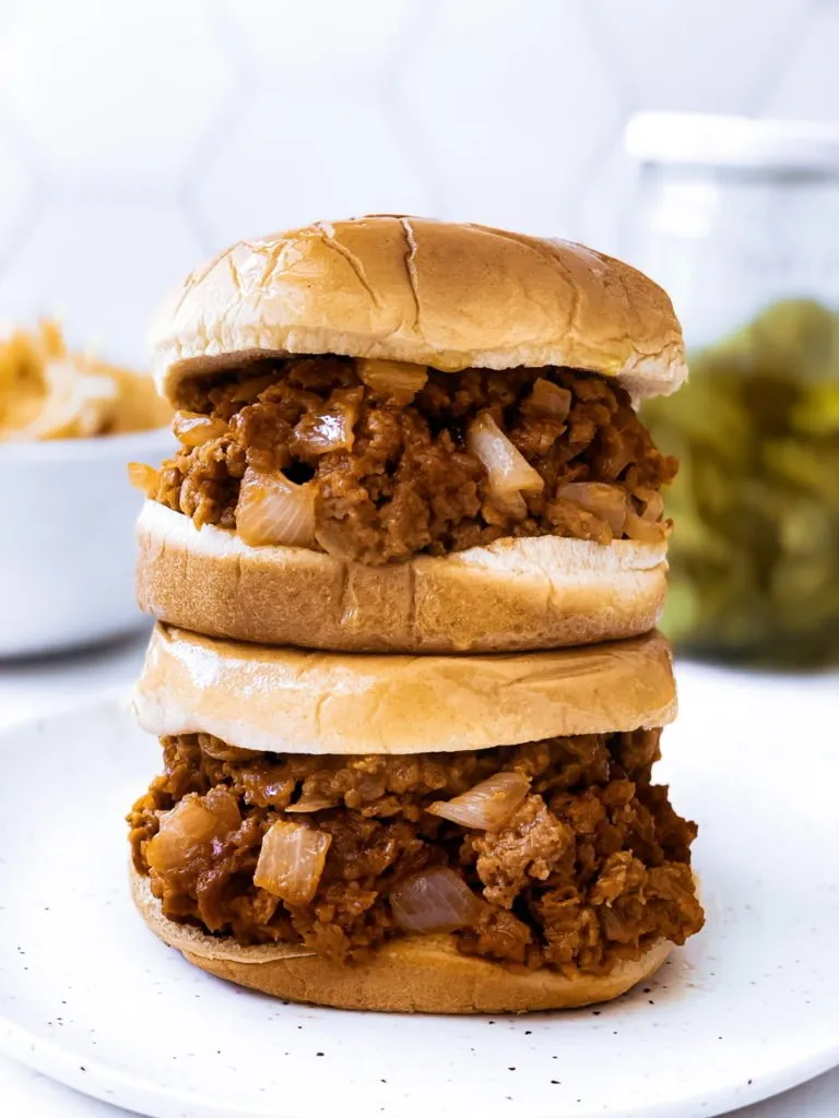 This recipe only has a few ingredients and that’s another reason why I like it. Did I say it was simple? I didn’t lie! Sometimes, simple is best. With the explosion of ground beef products out there, this makes this recipe even more legit and like I remember. Any brand of vegan ground beef or crumbles will work. This is savory and piquant (an extra point Scrabble word!) and literally can be assembled in minutes. The bun options are pretty endless too, but these are great as sliders. You could make this in an instant pot, but it’s just as easy on the stove top.