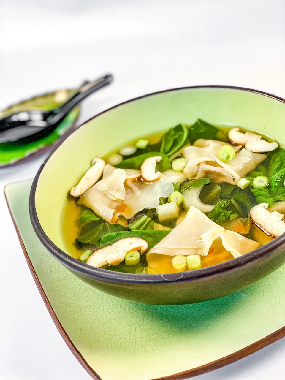 I love wonton soup and order it whenever a restaurant has a vegan version available. Haven’t made it in a long time, but Nasoya now has vegan wrappers and with the vegan ground beef available in stores now seemed the right time to revisit this classic soup.