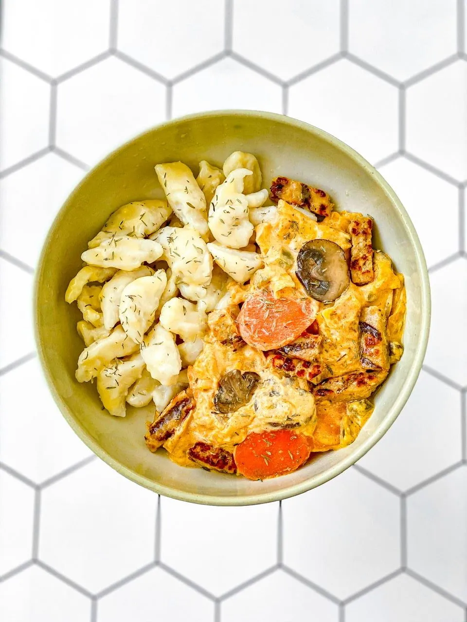 You’ve got time on your hands right now and desire amazing comfort food right? Well this Hungarian paprikash might be your new best friend. My wife’s family has been making this creamy stew forever and the unbelievable homemade dumplings called “nokedli” (that they call “knuckles” lol) that go with it. They are normally made with eggs, but my wife has perfected a recipe that are light as air. The paprikash is creamed with vegan sour cream and it’s like a warm hug. So good.