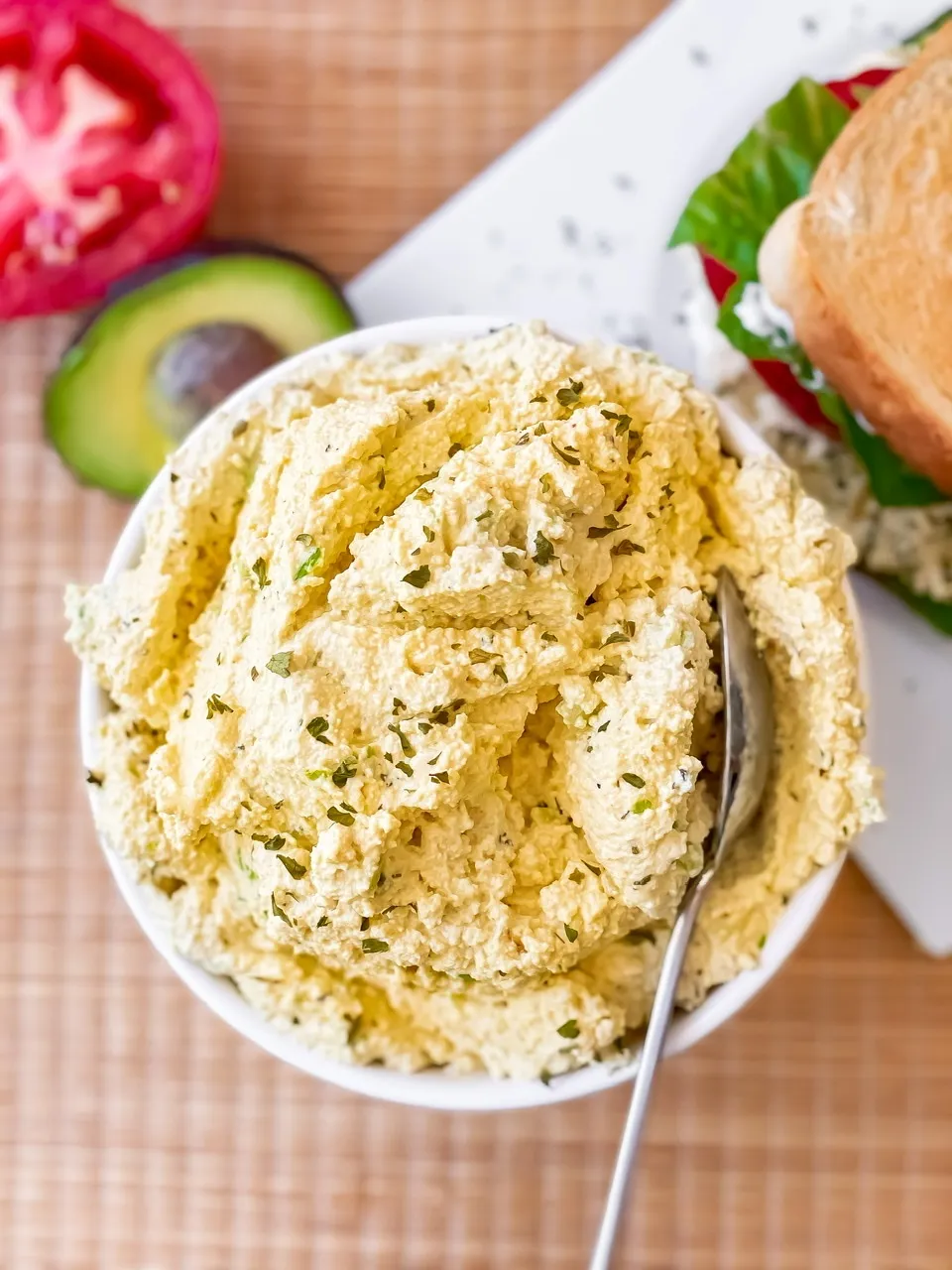 This is great in a sandwich or wrap or even on lettuce leaves for a low carb option. Use your favorite vegan mayo and I like to add some to the bread before assembling a sandwich. You can never have too much mayo right?