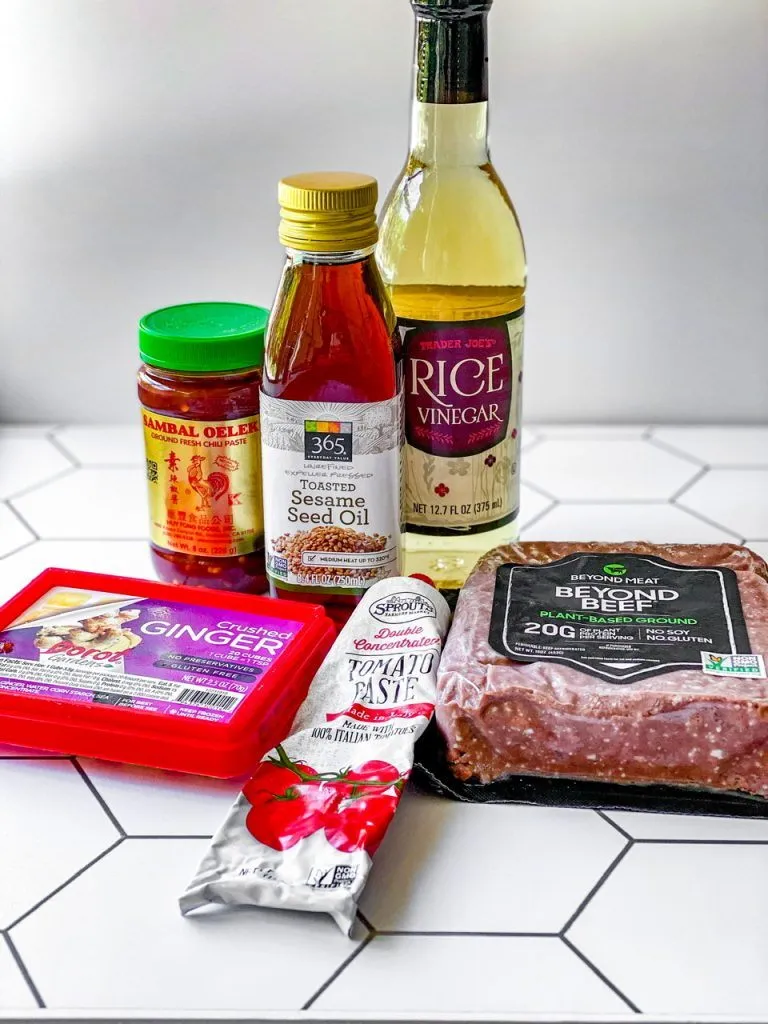 This comes together pretty quickly, but make sure you have all ingredients on hand. Sambal oelek is a spicy chili paste you can find in some supermarkets or at your local Asian market. It’s super spicy so you can use as little or as much as you’d like if you want it hot. I fall somewhere in the middle with my heat tolerance so the measurements reflect that.