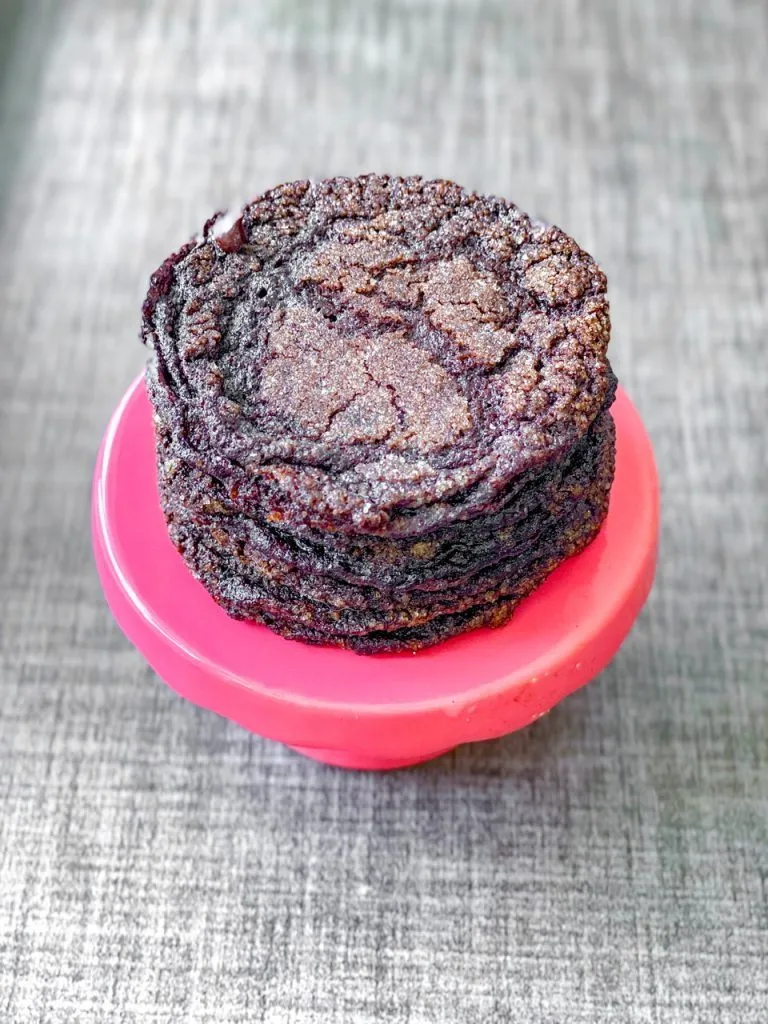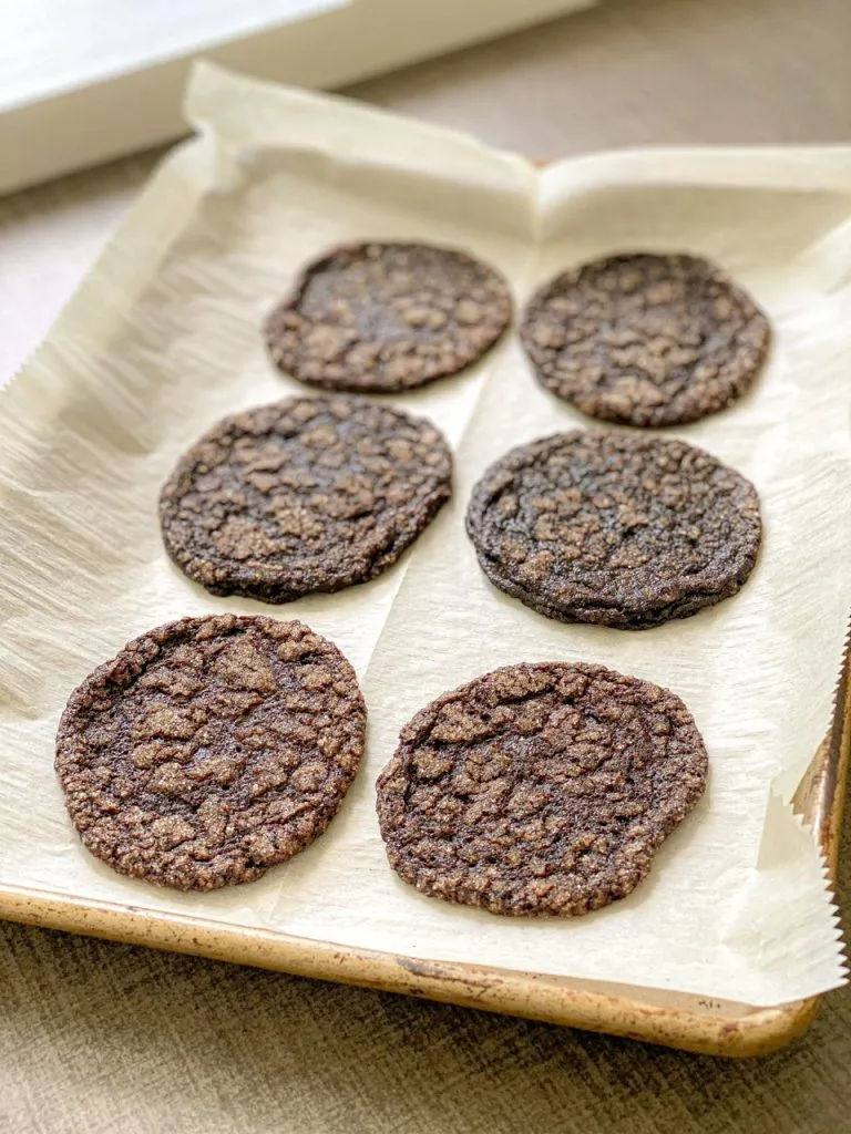 Another unusual thing about these cookies is that you need to use a silicone baking mat or parchment paper when baking. If you don’t the cookies will spread out way too much and basically bleed into one another. I don’t know why. It’s some crazy science thing perhaps but I tested it once again and was left with a thin brownie like layer instead of individual cookies so make sure to use a liner of some kind. I prefer parchment but sometimes you can find great deals on Amazon for silicone baking mats.