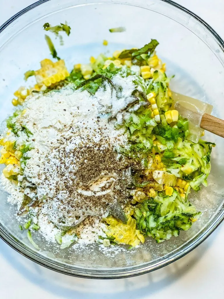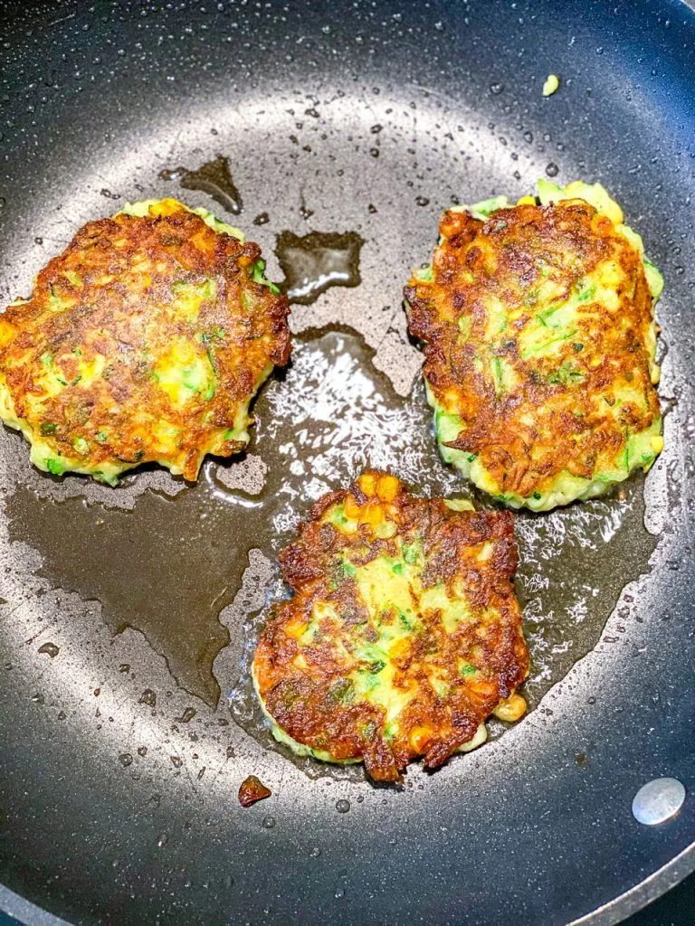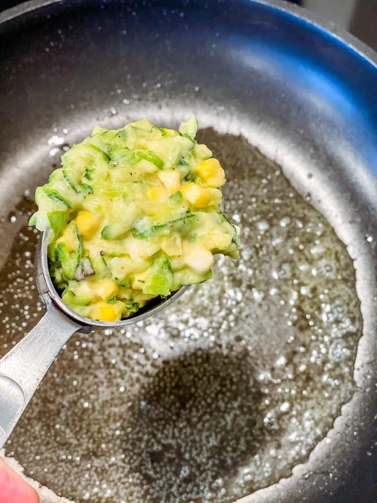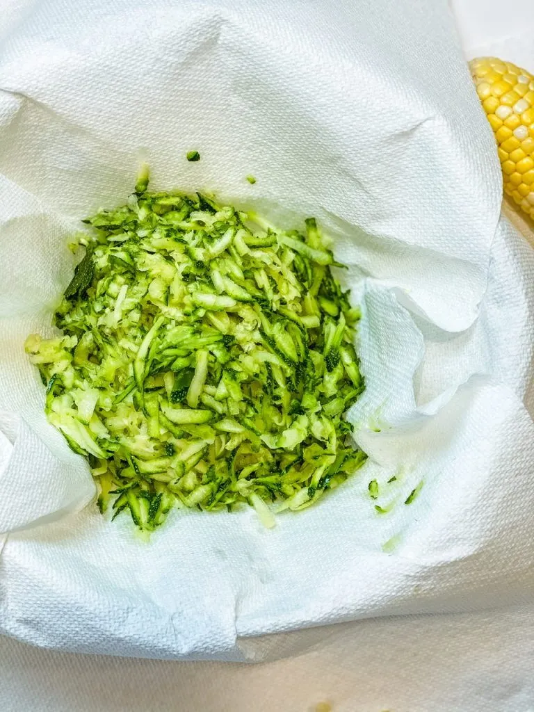 One thing you have to do is squeeze some of the moisture out of the zucchini before mixing it with the rest of the ingredients otherwise the pancakes will be mushy. One easy way is to do this is to just squeeze some out using paper towels or a clean dish towel after grating.