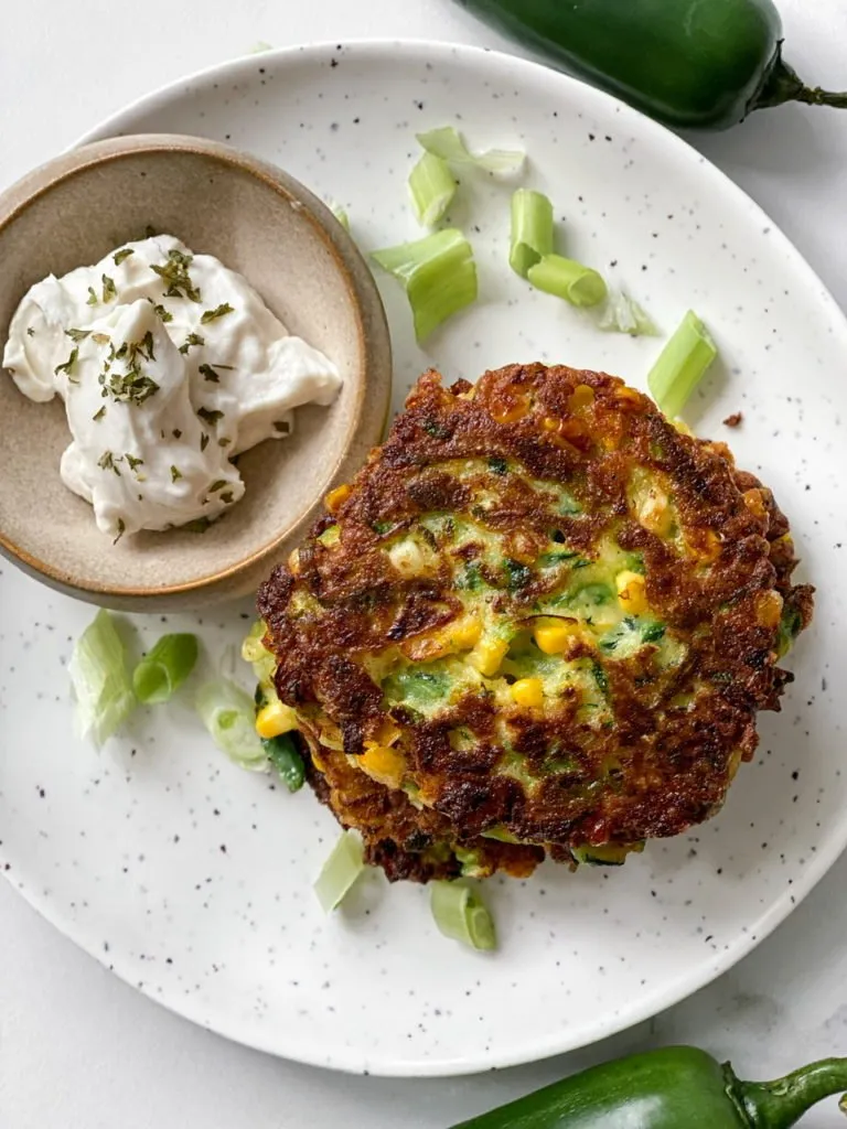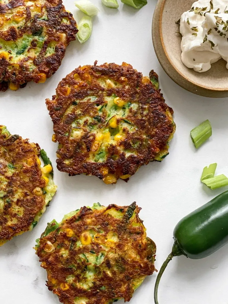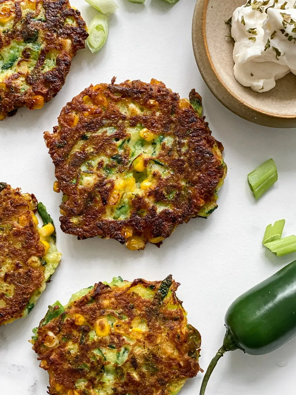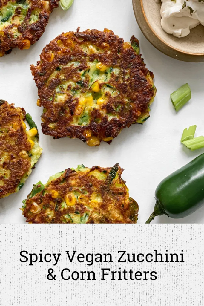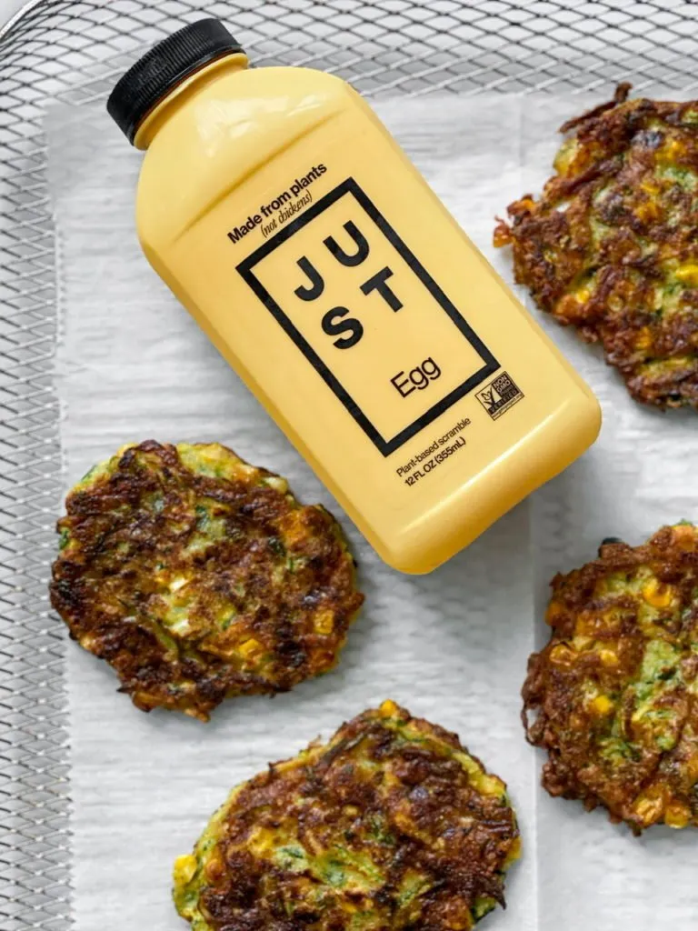 Zucchini and corn are summer besties. They’re great together in a succotash, stew or in these great pancakes that get a kick from jalapeños. They were always hard to make because their flavor and texture relies heavily on eggs. We now have the incredible Just Egg so that’s no longer an issue! Eggcellent. Let’s move on.
