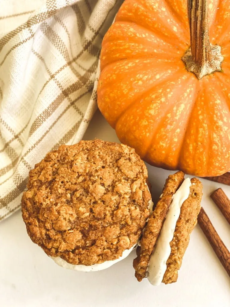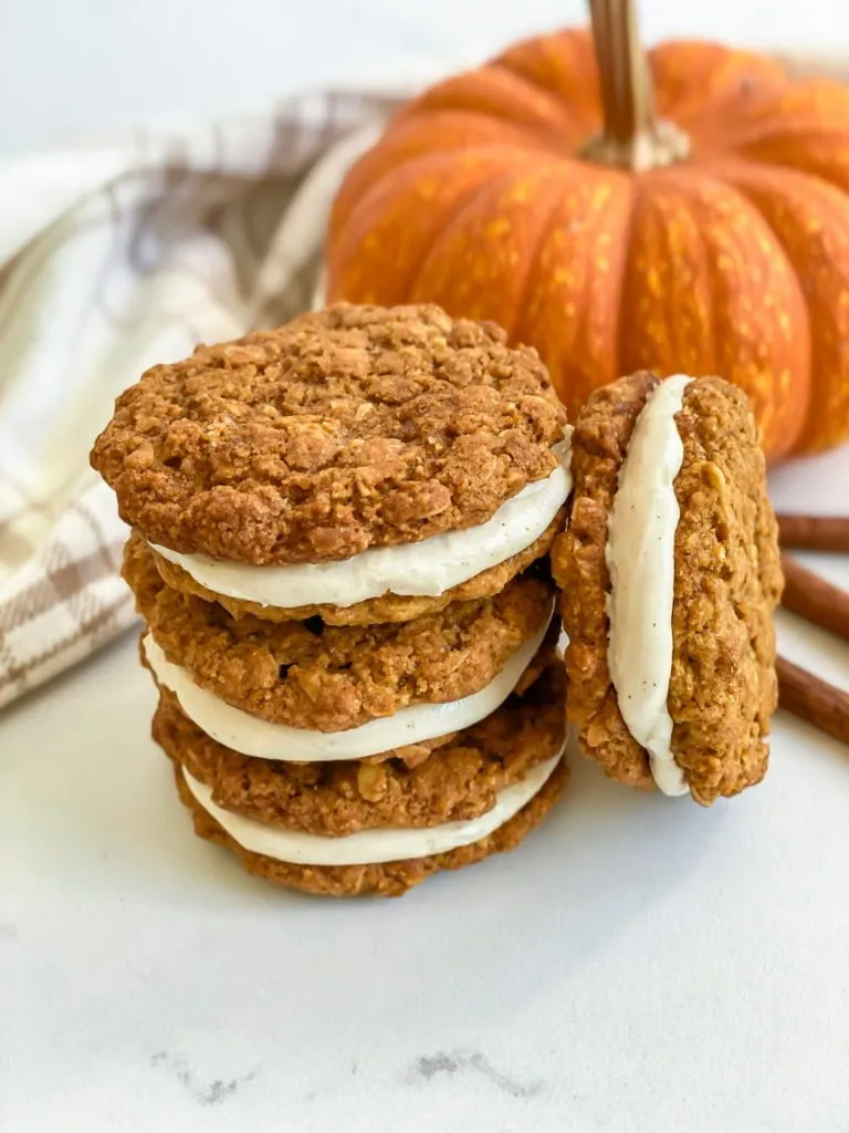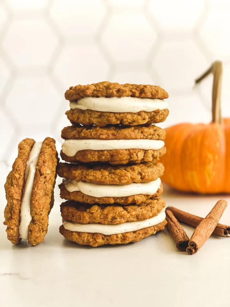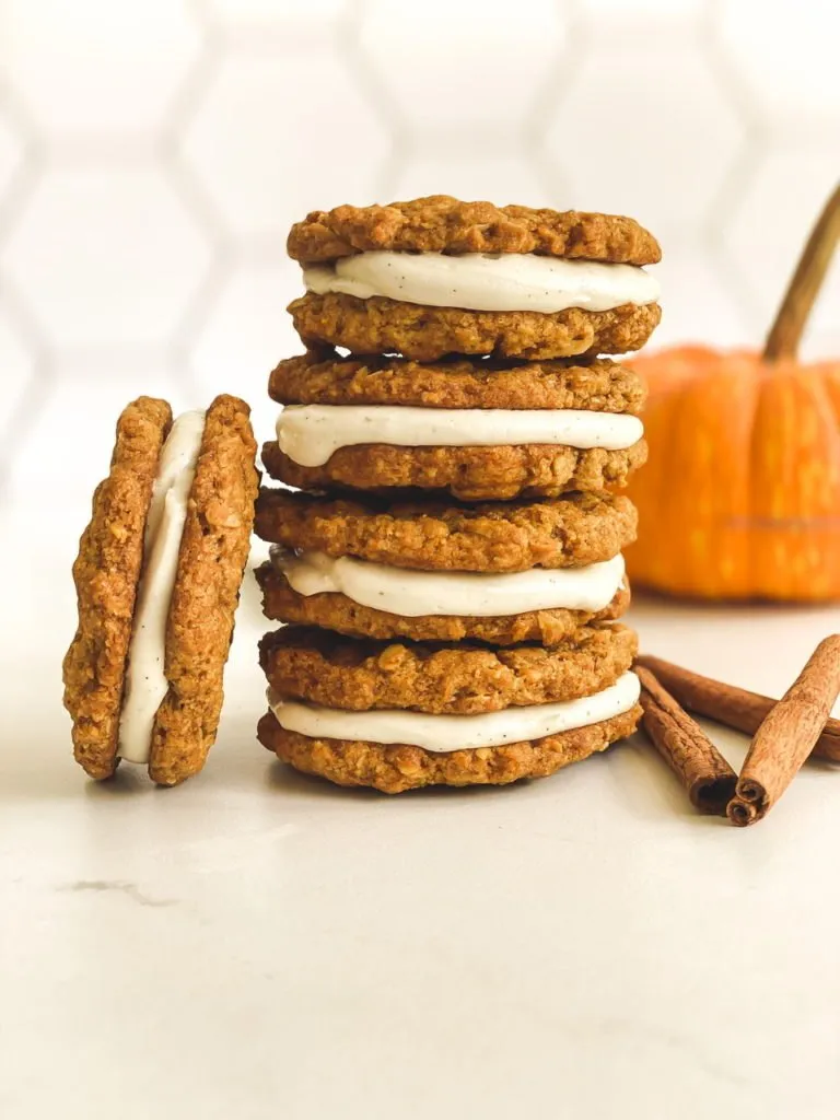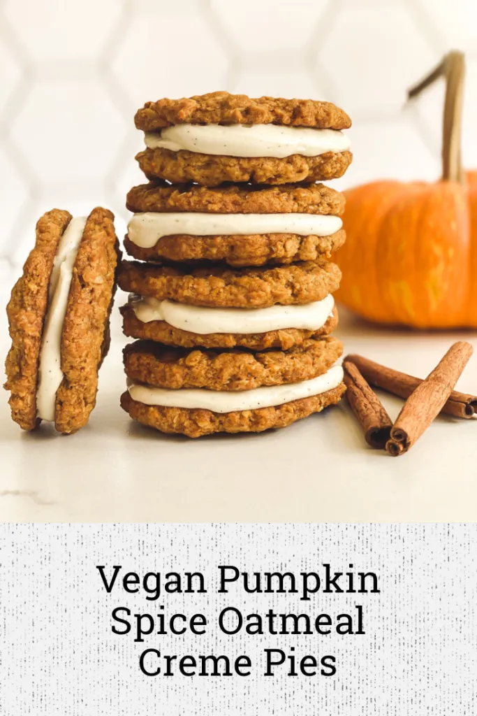 If store bought oatmeal creme pies were your thing as a kid, then these are like those only better. And vegan. And pumpkin spice cause it’s fall. They’re soft and ultra chewy and have a creamy filling so what’s not to love?