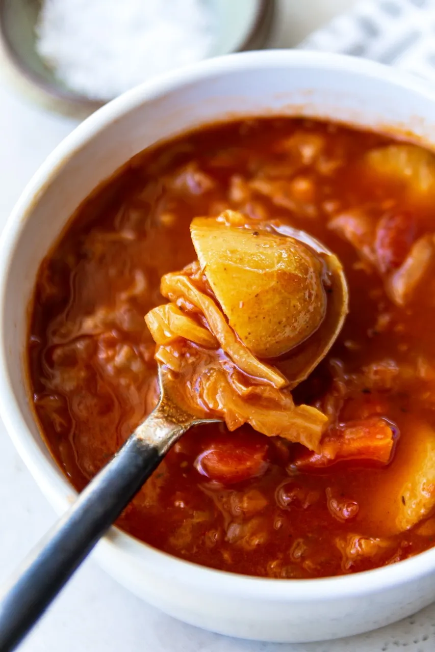 I use plain green cabbage in this soup but I suppose you could use savoy or even red cabbage if that’s what you have (although they’re generally more expensive). I also make mine in an instant pot which is basically a pressure cooker. It’s quicker and adds a depth of flavor like it simmered for hours. I got mine at Costco of course because I know if anything ever goes wrong with it, I can bring it back!