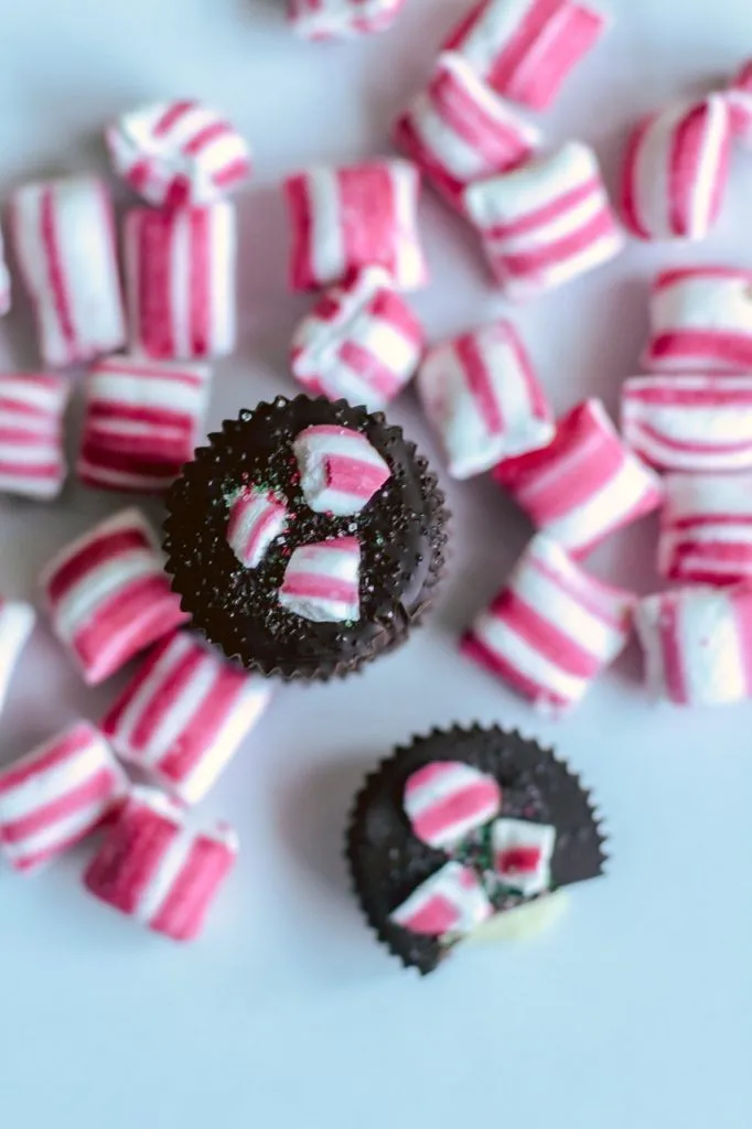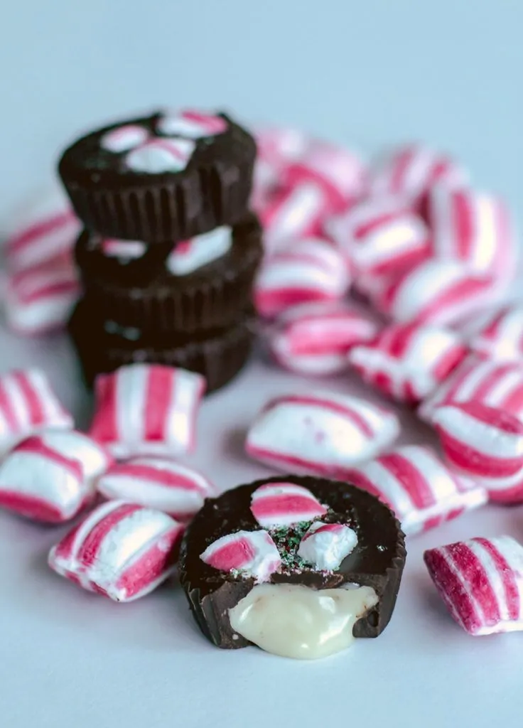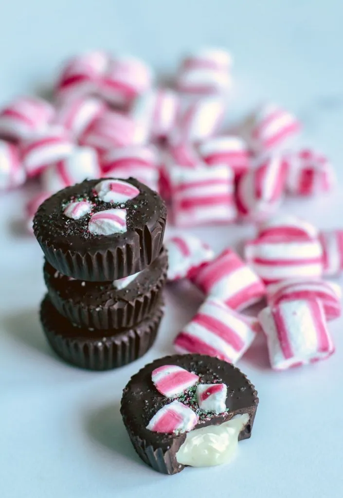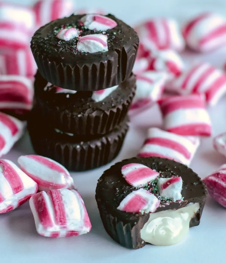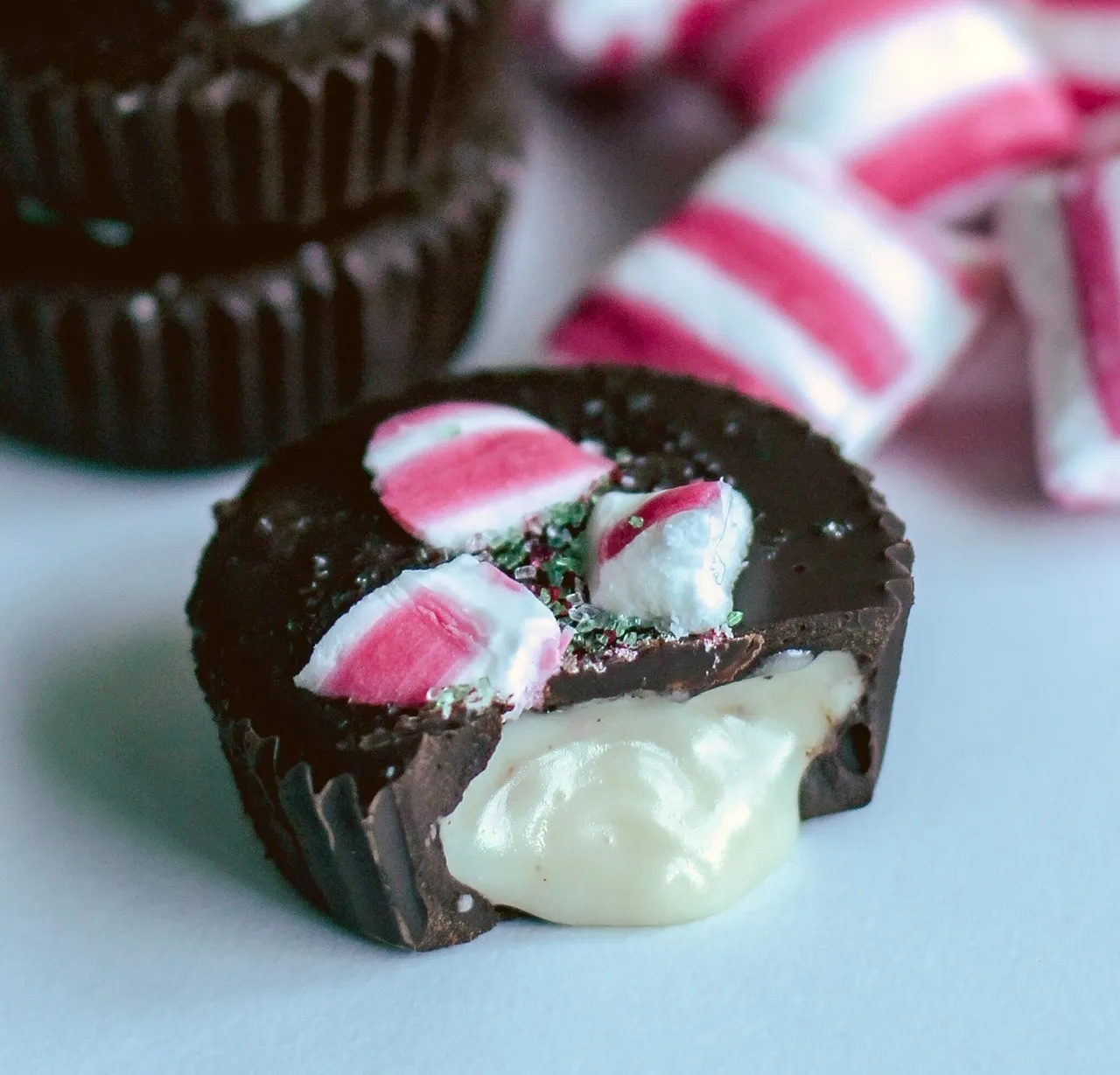 This is a pretty simple recipe. You make the filling, melt some chocolate then using a candy mold or paper baking cups, you put in some chocolate, add some filling, top with some more chocolate then chill and eat! You can top these with crushed peppermint candies or sprinkles or just eat plain. Any way you make them, they’re tasty.