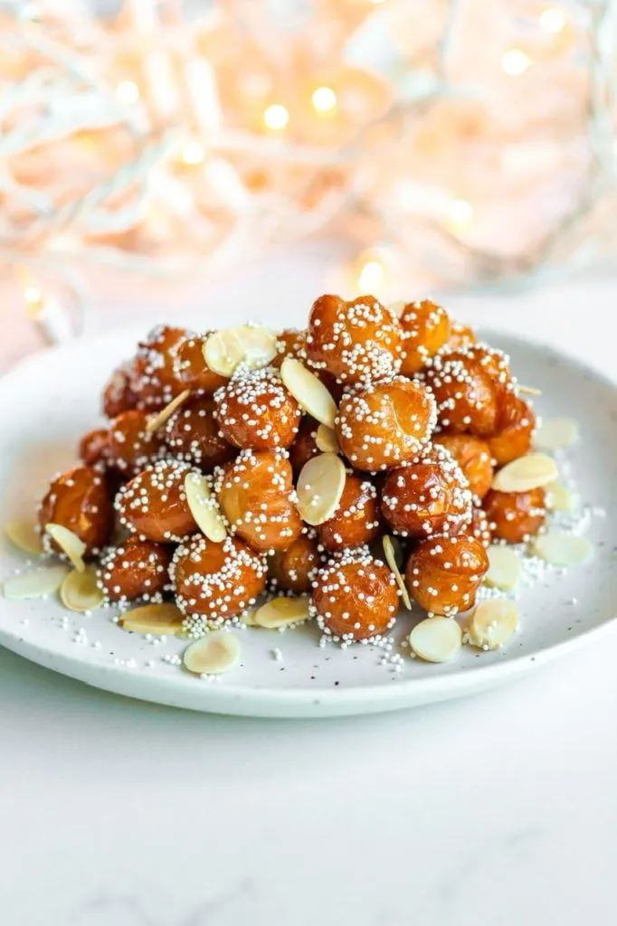 Struffoli or Italian honey balls are an amazing holiday treat. I remember first having them one year when someone brought them to a family Christmas party and no one knew what they were (we’re not Italian) so no one ate them. I however started eating them the next day watching Saturday morning cartoons and before I knew it, poof! – they were gone.