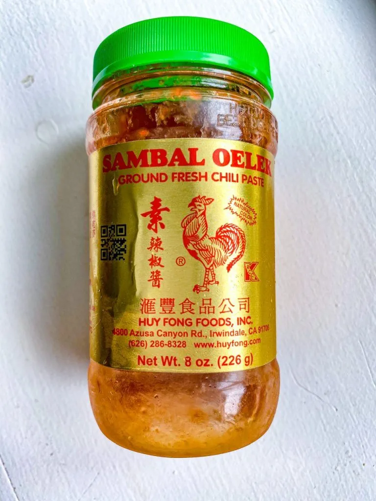 Most of the ingredients for the sauce are pantry staples with the exception of one. Sambal Oelek. It’s a chili paste essentially and found in most Asian markets. It’s really good and I add it to a lot of things but it’s what gives this sauce it’s kick. If you don’t have it, sriracha will do in its place.