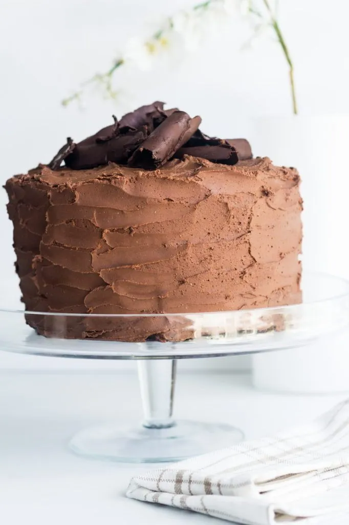 January 27 is national chocolate cake day! I love cake and a vegan moist chocolate cake with decadent chocolate frosting seemed just the thing to create for this special day. Words cannot express how amazing this cake is and I’m so excited to share it with you! It’s so chocolatey, moist and is the perfect texture. Not too firm but not too light. With the incredible frosting, it’s literally the only chocolate cake you’ll ever need to make! I defy anyone to tell that this is vegan. I’ve decided to call it “Death by Chocolate Cake” as if you could die from too much chocolate. Well dogs can, so don’t feed it to them!