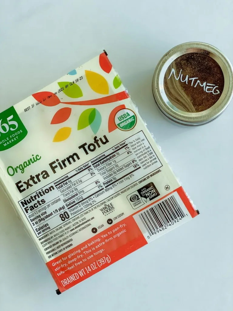 The secret ingredient in this is nutmeg. I know. Sounds weird, but it really works in this. It’s usually reserved for baked goods, but it adds a depth of flavor reminiscent of the real thing. I often use nutmeg with spinach dishes a lot. The last special ingredient is nutritional yeast or “nooch” as vegans like to call it. It adds another layer of cheesiness to the ricotta.