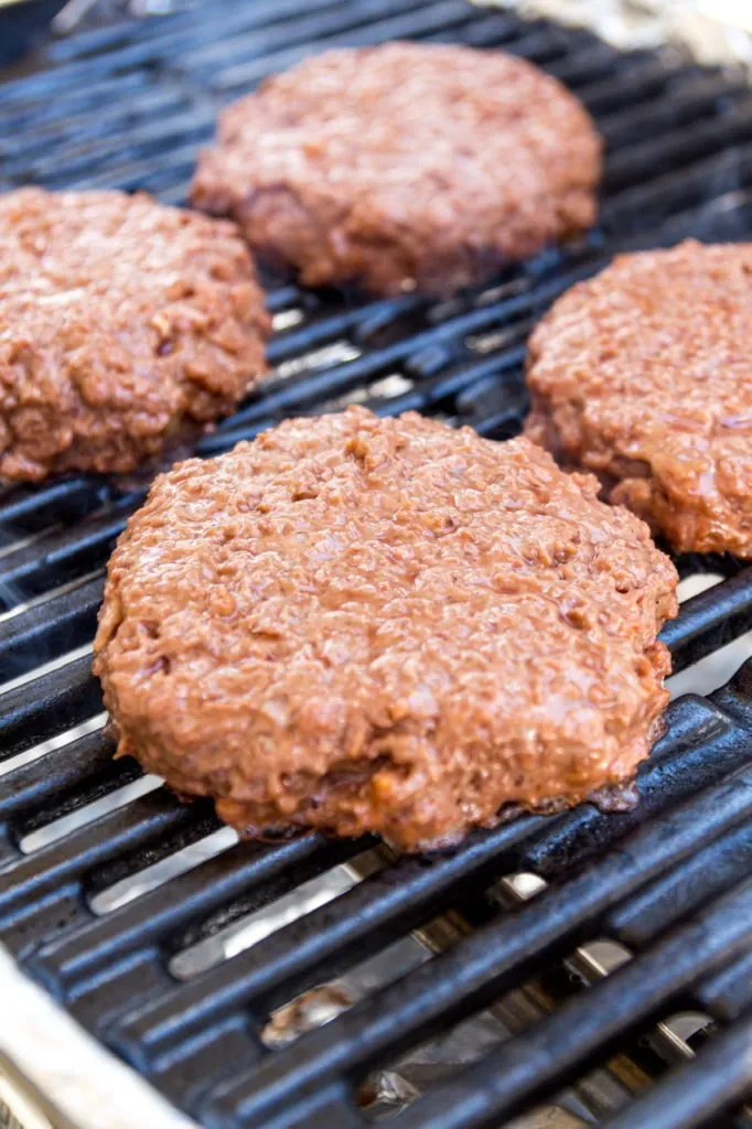 My slider recipe is pretty easy but does contain a few unconventional ingredients. Peanut butter (or any other nut butter you prefer) is one, then a packaged onion soup mix is another (I prefer Lipton’s onion mushroom mix as it’s less strong and more savory than the traditional mix). You can use a brick of vegan ground beef (I use Beyond Meat) or 4 large fatty vegan burgers (resist the urge to use low fat burgers). You’re going to mix it all, let it chill, then form it into 4 patties. You can grill, pan fry or even bake these. Grilling (which I did) can make them a little drier so try to not overcook them. Pan frying will probably be the juiciest but I bake my sliders per my recipe as they’re cooked as a whole slab, surrounded by onions and cut into small pieces later. You can certainly bake these as well and even surround them with onions per my original recipe if you prefer. I would just add the alcohol of choice and soy sauce to the onions before baking to give them that onion soup flavor.