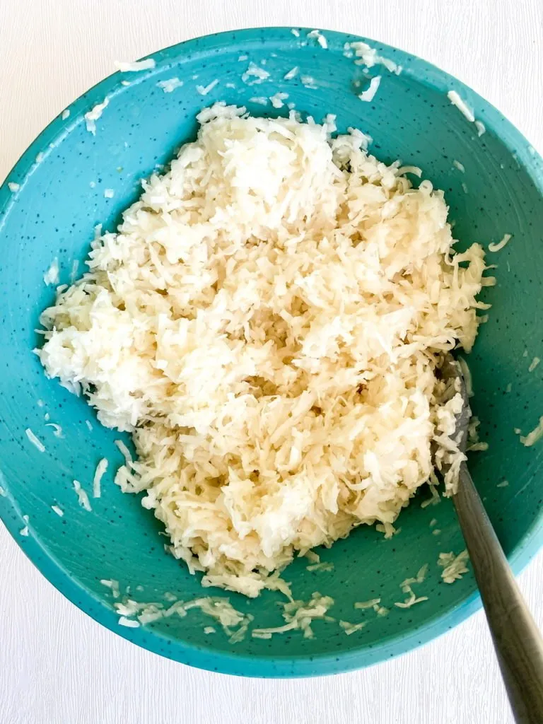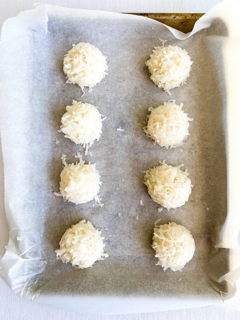 These coconut macaroons obviously start with coconut! The classic type of coconut to use is sweetened flaked coconut and it keeps these extra soft. You could probably use unsweetened desiccated coconut but I think the recipe will suffer. It might wind up being too dense. Another ingredient you’ll need to find is sweetened condensed coconut milk. It’s getting more widely available and you can find it at Walmart and Whole Foods Market often in the international foods aisle. Then we’re going to use the magical aquafaba (liquid from canned chickpeas) instead of egg whites. I prefer to use unsalted chickpeas and you just drain off the liquid. It will actually whip to stiff peaks and people make French style macarons with it! A little extract and salt and that’s it, told you it was easy!