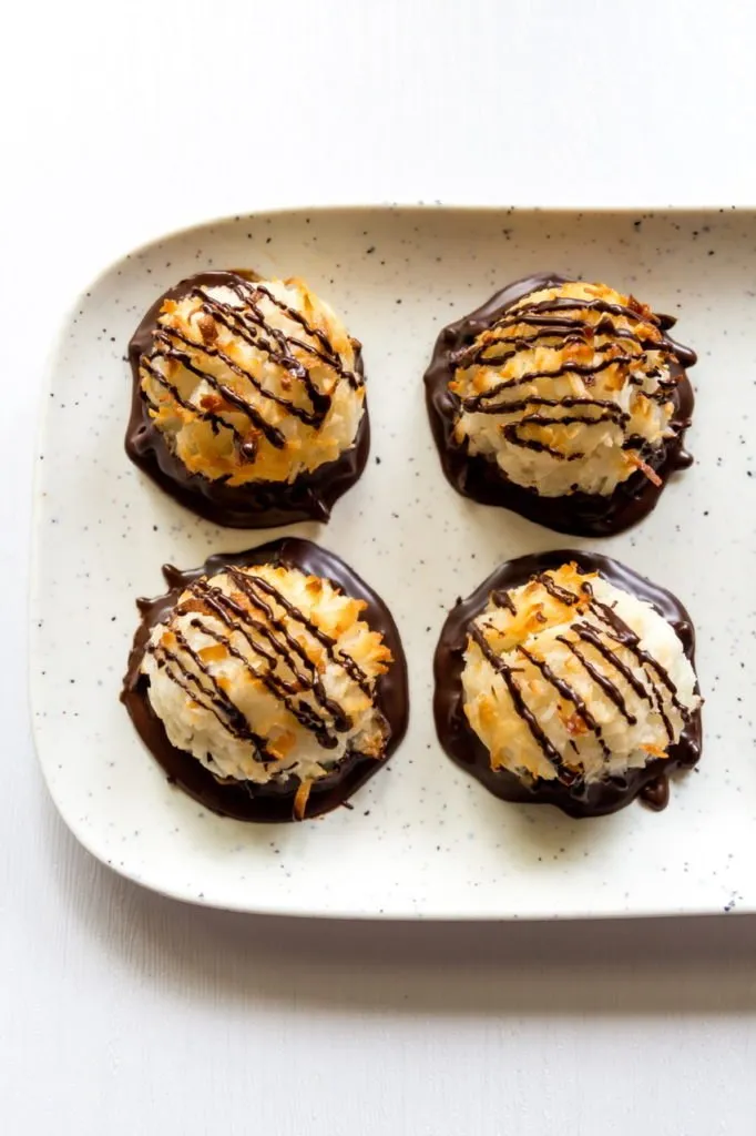These are the best vegan coconut macaroons and are super easy to make. Just a few ingredients is all it takes and you’ll be eating these in no time. Now these are macaroons not macarons which are French meringue confections and a different dessert entirely. Some people confuse the two, but these are soft moist coconut pillows that are a perfect snack and make an impressive presentation!