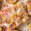 I use a 9×13 pan to bake this and I line it with parchment paper for a few reasons. One, it makes it easier to lift out once cooled. Second, you don’t need to grease and flour the pan. Lastly, it makes cleanup a breeze. After folding the corners of the parchment into the pan, I use office binder clips to secure the sides of the parchment all around the pan so it doesn’t shift or fall into the pan while baking. You can most certainly use another sized pan and grease and flour if you prefer. Remember that if you use a smaller pan, it might take longer to bake. I hope you enjoy this family favorite as much as we do!