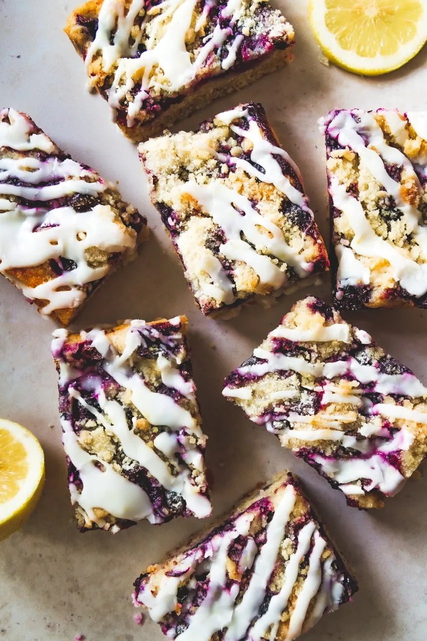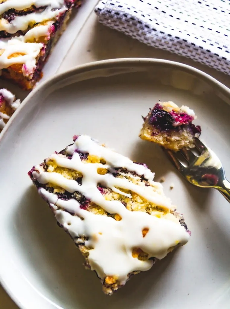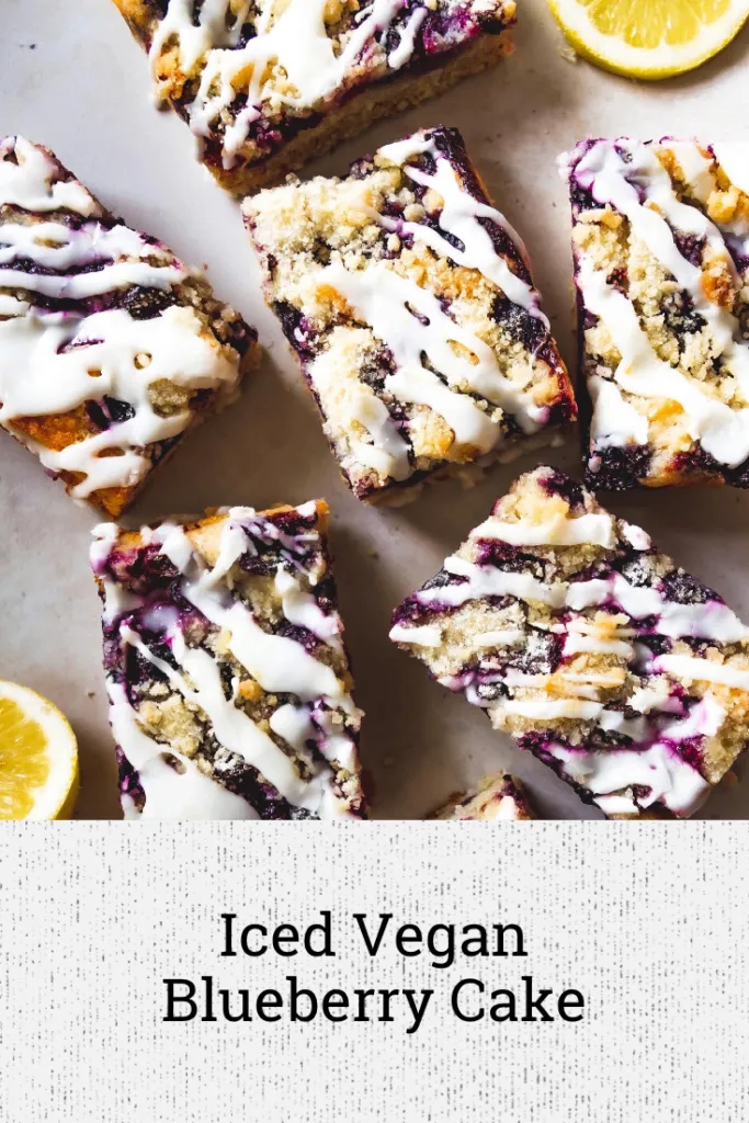We always called this a cake but it’s more like what I’ve seen called a “buckle” which is fruit and cake with a streusel topping. It’s a light cake on the bottom, with blueberries dotting the surface and a crumb mixture on top (which is separated from the dough base). It’s quite simple and this is how the cake was always traditionally prepared but I decided to also add a lemon drizzle on top because it added a little tartness to the finished bake and looked nice. I hope Dot would approve. We lost her sadly a few years ago and I’d like to think she’d love this vegan version of her classic recipe.
