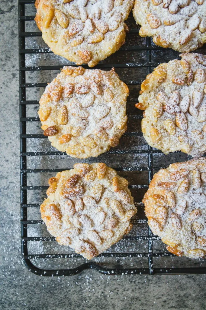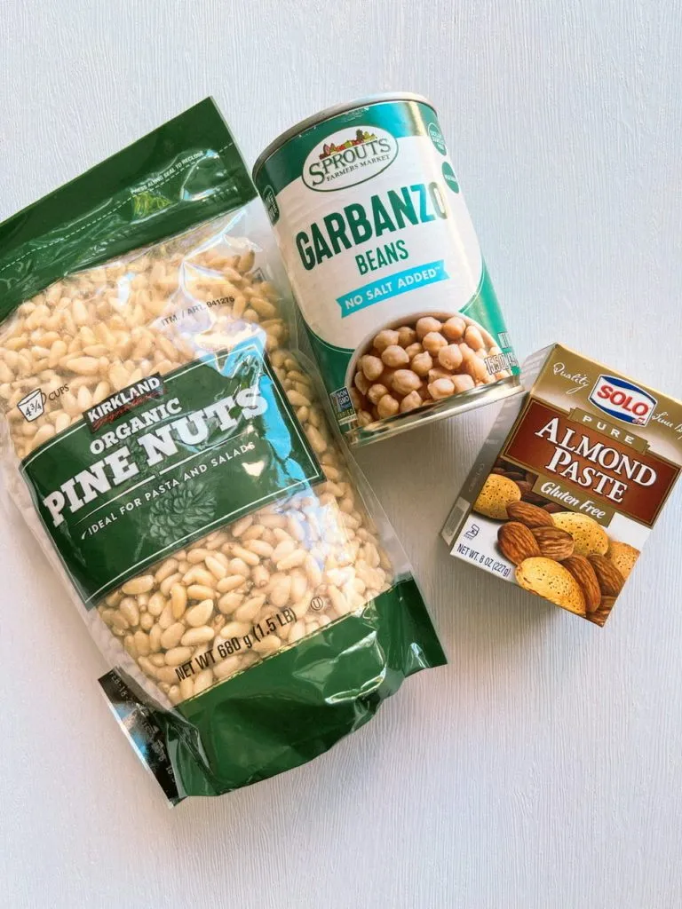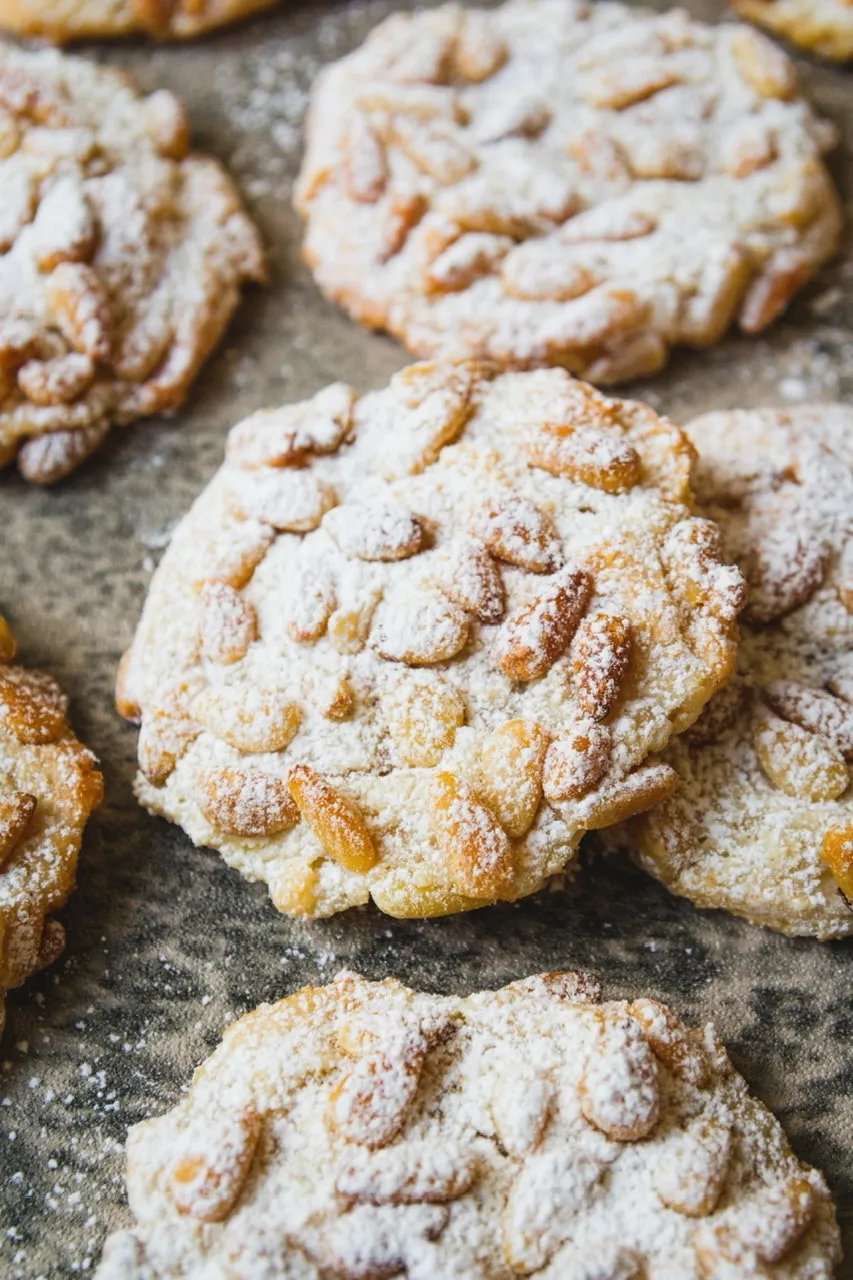 If you’ve never had a Pignoli cookie, it’s hard to describe. They’re made with almonds (specifically almond paste) and are chewy with a burst of almond flavor and toasted pine nuts on top. If you love marzipan, then you’ll probably love these! Pine nuts can be expensive so I usually buy a large bag at a warehouse club and keep them in the freezer. They’re the classic nut to use for basil pesto and I also love them in salads and more.