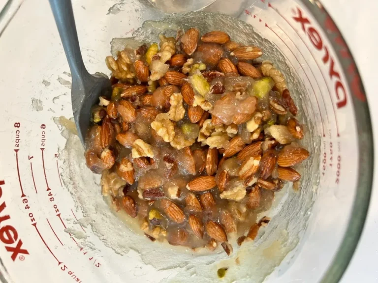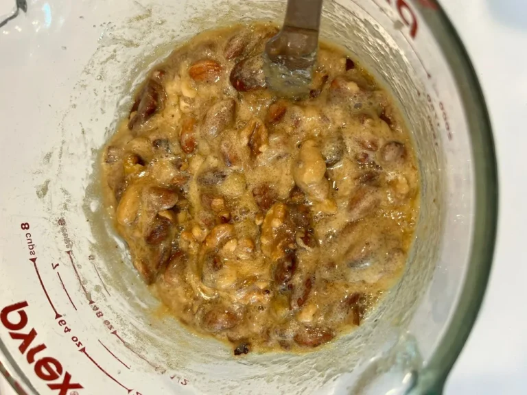 The original recipe calls for butter but we’re using vegan butter instead. Use a firm stick or block style. I’ve also added a sprinkling of flaky salt at the end because I like the extra salty edge but omit if you prefer. As for the corn syrup (cue gasp), it’s an essential ingredient unfortunately. Agave or maple syrup just won’t work the same as they don’t have the viscosity. Corn syrup is straight up glucose however and not the high fructose variety used in processed foods so although some will just not want to use it, it is in fact different. Since I only make this one time a year, I’ve had a bottle last me 3 years now.