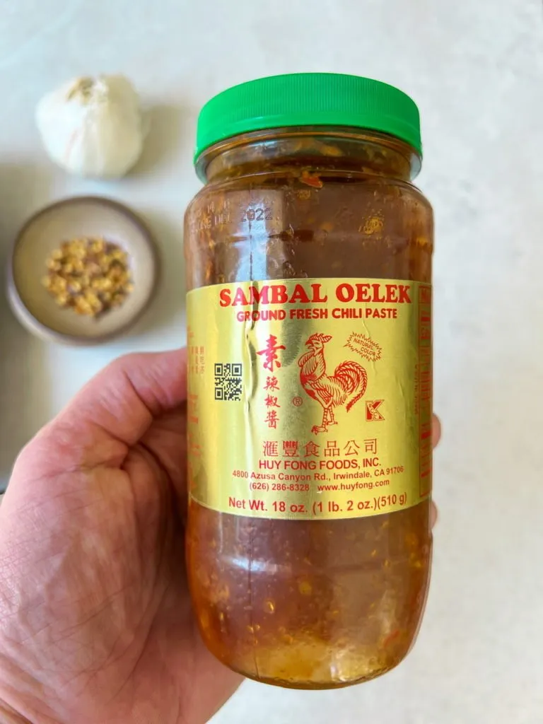 There’s a few things you’ll need but most of the ingredients are pantry staples. The only unusual one you may not have on hand is sambal oelek. It’s a chili paste and can be found at most Asian markets and even a lot of grocery stores. I think it’s the secret ingredient but if you don’t have it you can use red chili pepper flakes to taste.