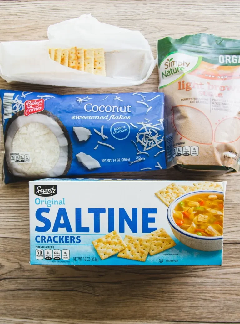 Use Saltine style crackers for this recipe. Rich buttery crackers won’t yield the same results. Also use sweetened coconut flakes. The extra sugar is needed as we’re not using a lot in the pudding base itself.