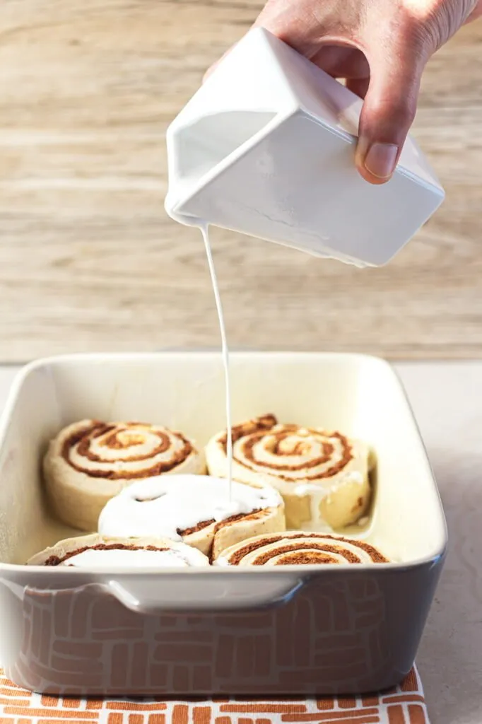 Game changer! I used coconut milk, Annie’s cinnamon rolls, and a square baking dish. I really love how they turned out, so I will have to make them this way every time!
