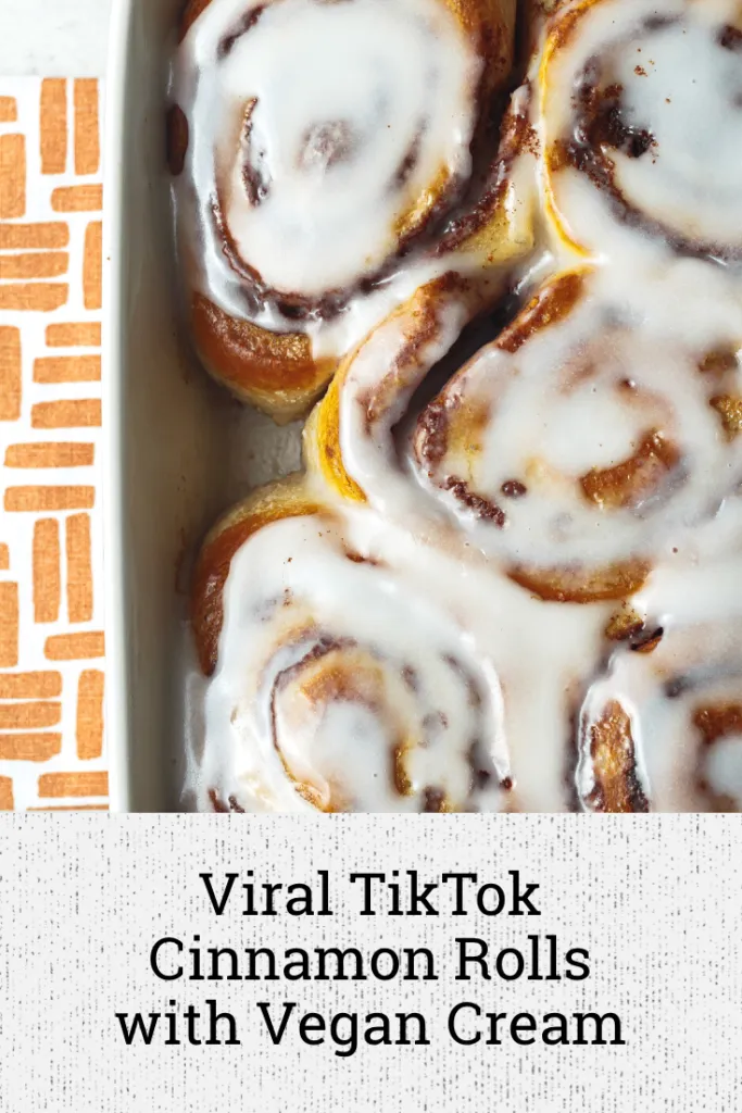 We’re not ones to jump on viral trends so much here at BBV headquarters, but when we saw this simple hack to make canned cinnamon rolls all taste soft and gooey, we knew we had to try it. This viral tiktok cinnamon roll hack uses heavy cream (we used vegan cream) and store bought cinnamon rolls to create a light and moist cinnamon roll. I can’t really call this a recipe, but this “hack” might not even have been possible just a few years ago (ok, maybe with full fat coconut milk) but there are now a few vegan heavy cream substitutes on the market so let’s roll!