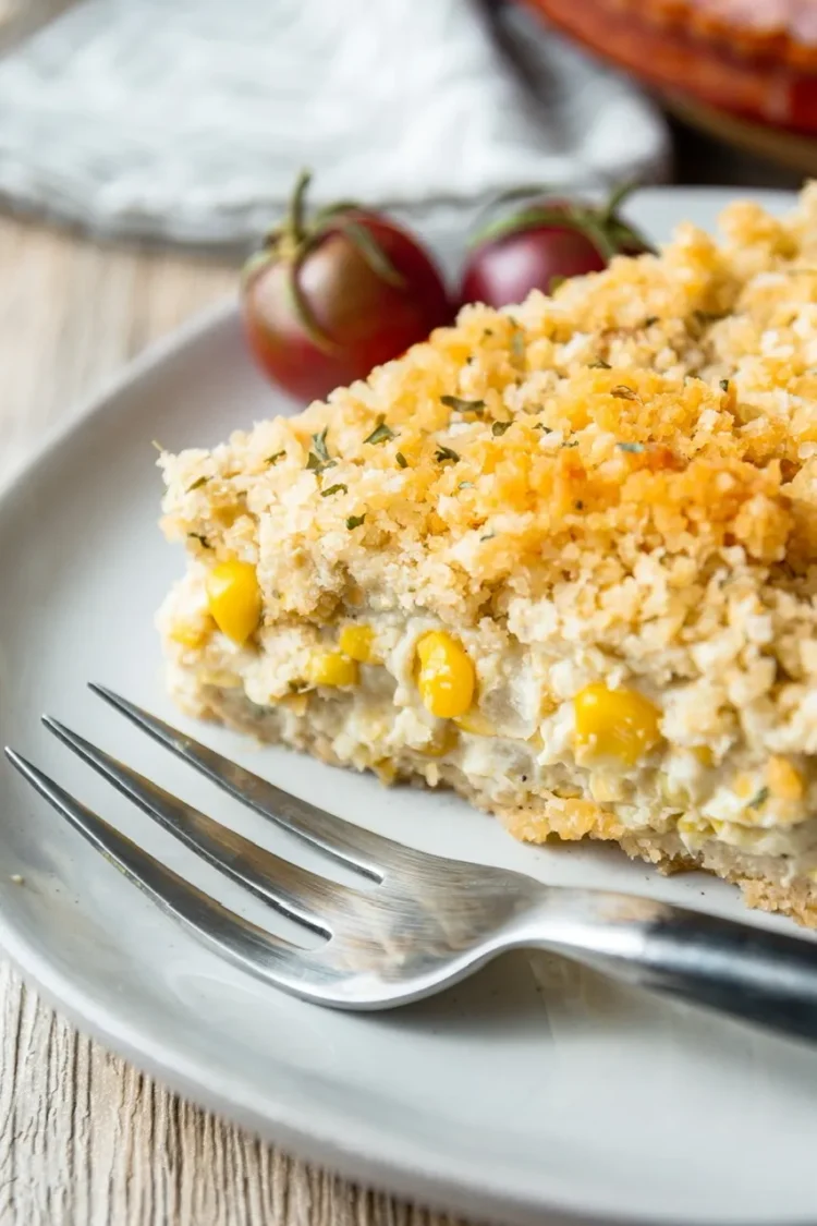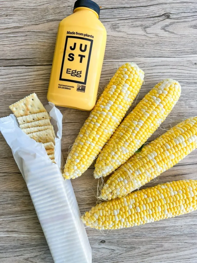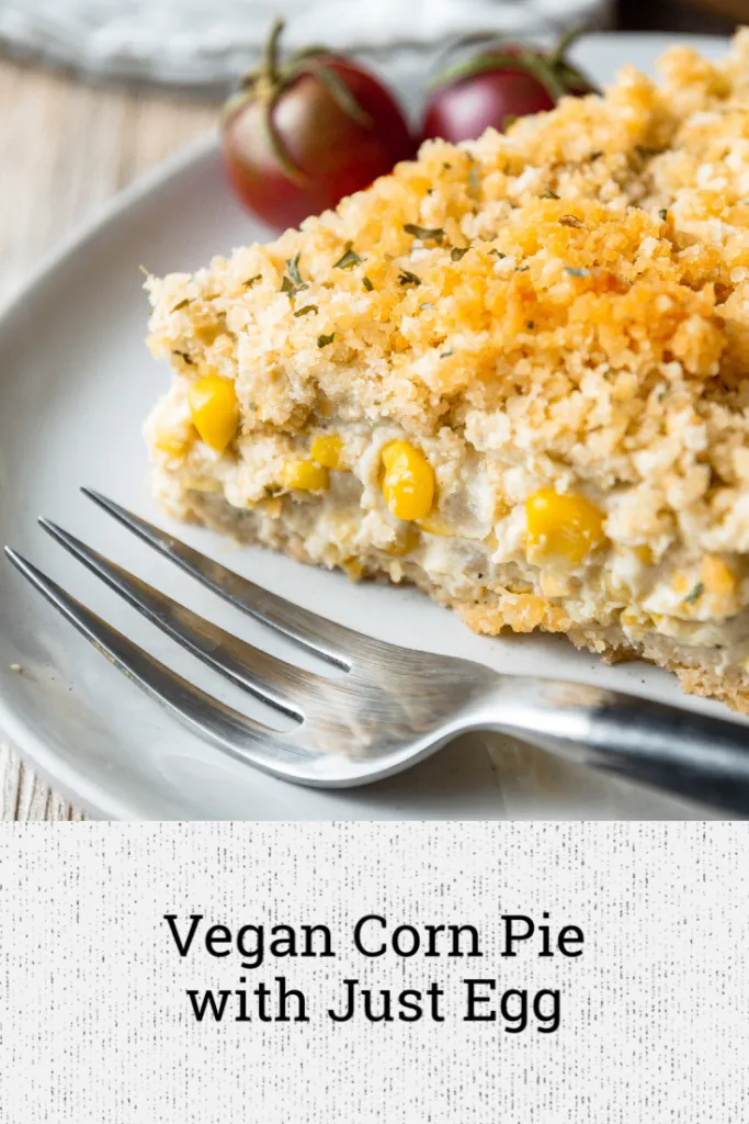 After going vegan I tried recreating it with tofu and other egg substitutes but it was never the same. Recently while combing through an Amish community cookbook I bought decades ago I found a version of the corn pie and it seemed legit and only used a few eggs and I knew I could now substitute Just Egg for them. This recipe uses a cracker crust though and I was dubious at first but wow is it delicious. The original pie used a plain pie crust and that will work as well if you prefer. My recipe for my vegan squash casserole uses cracker crumbs too so I knew it would be similar but I was scared it wouldn’t hold up when sliced but it totally does. Plain saltine type crackers are best to use but I suppose a vegan buttery type like a Ritz style would work as well. Not sure if gluten free would work but I don’t see why not.