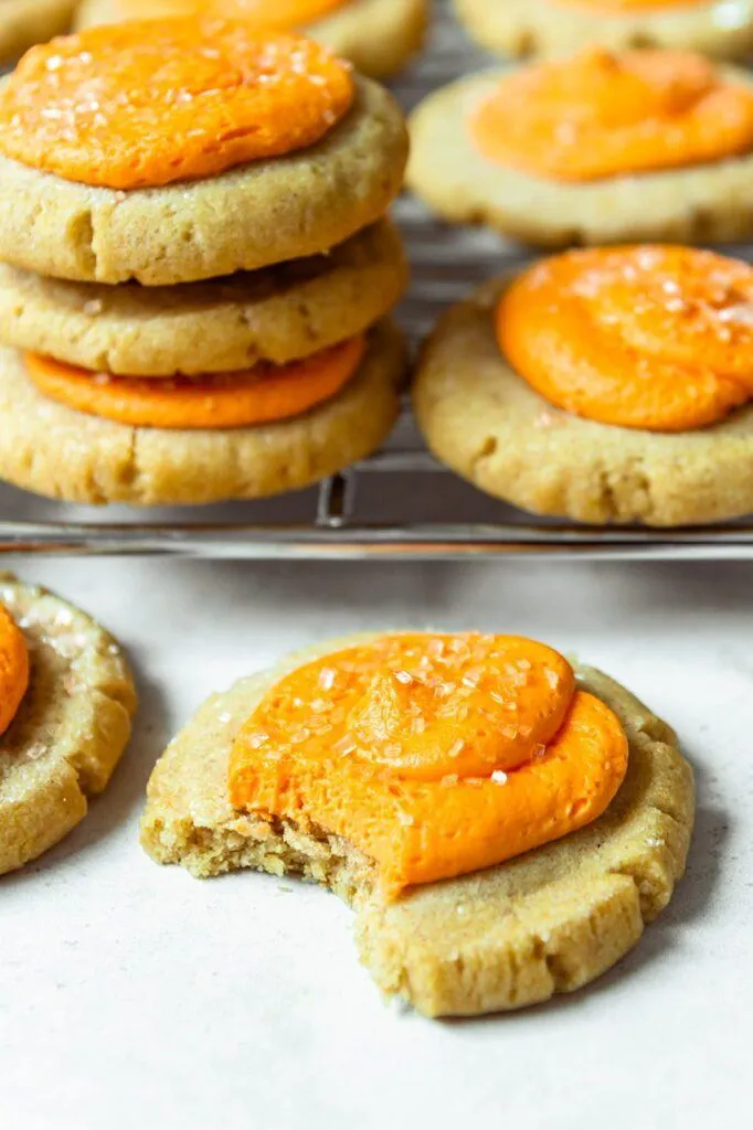 To achieve that soft pillowy texture these shouldn’t be over-baked but also need to be done so it’s a fine line as they go from perfect to overcooked in a flash. I did cook a batch a bit too long and they were still delicious but more like a traditional sugar cookie. If you like a crunchier cookie then by all means bake a little longer than my instructions advise. I suggest test cooking one or two cookies to gauge the temp of your oven and how long they might take to bake.