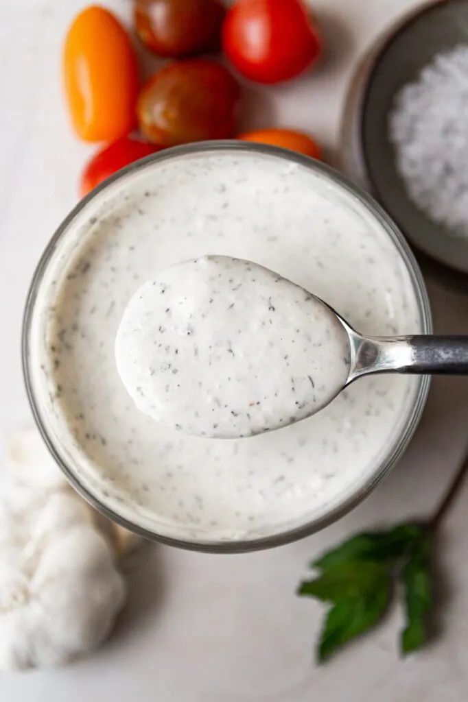 I was never a huge fan of the bottled ranch dressing sold in stores but I do remember my neighbor making it from the packet and adding ingredients and that was pretty good. As an adult I’ve had some really good ones at restaurants and they were all really dill forward and garlicky so I tried to create my own and quite frankly I think I’ve nailed it. This ranch is so good. Like run your finger around the inside of the container and lick your finger good. It’s also pretty easy but I used some specific ingredients so follow my lead if you want to succeed.