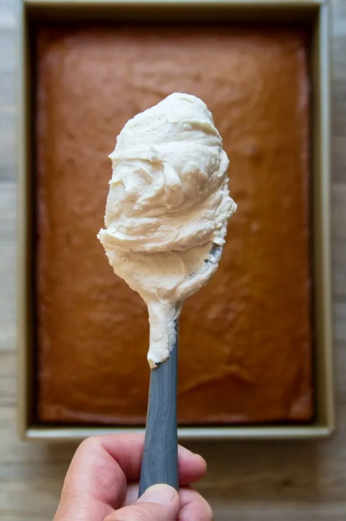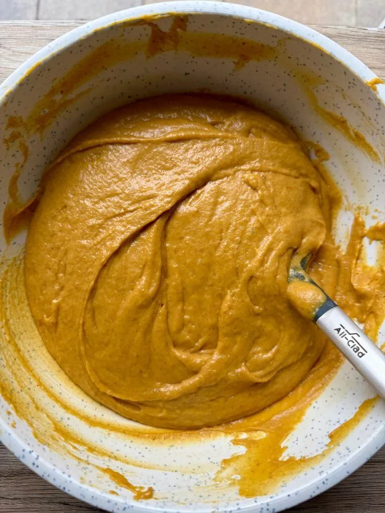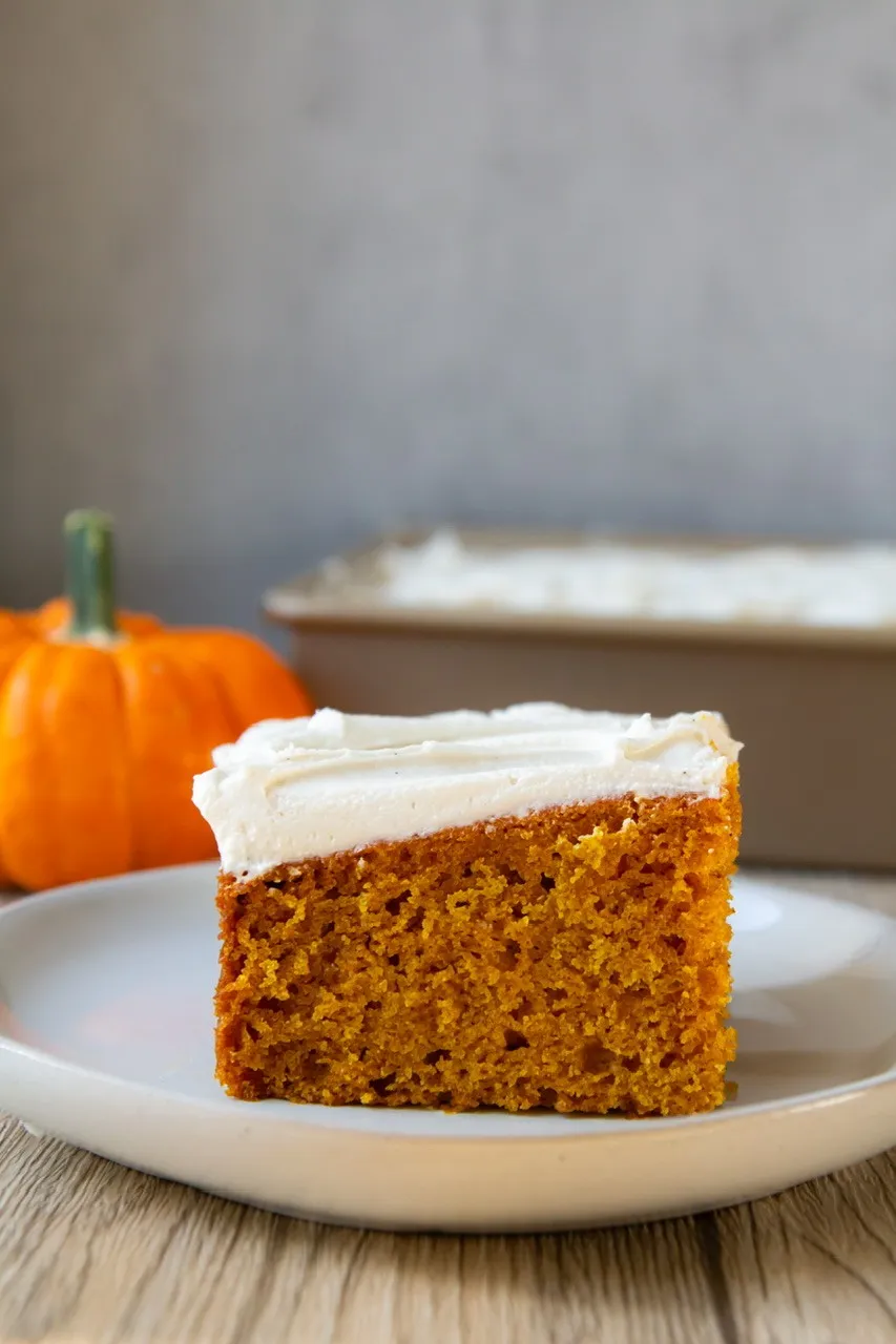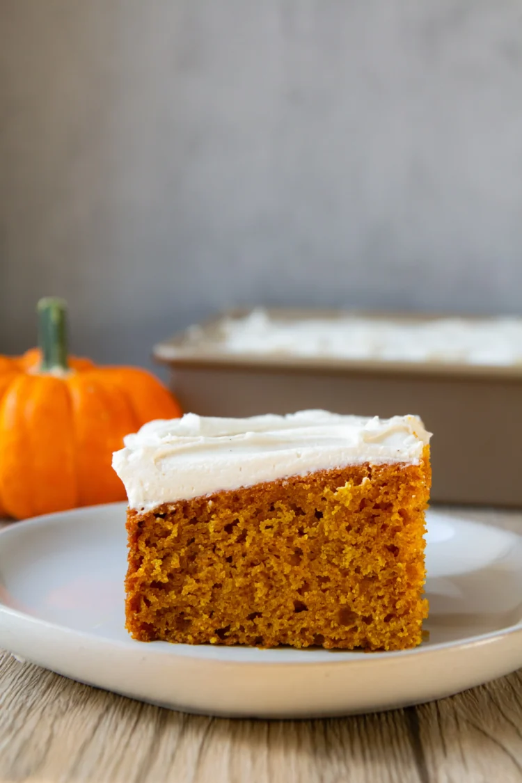 This cake has no special egg replacers so most of the ingredients will be in your pantry or fridge. It uses a bit of vegan sour cream or yogurt for tenderness and if the sour cream is a bit thick, I thin it out with a bit of vegan milk or cream before measuring. It also uses a full 15 oz can of pumpkin and all the warm autumnal spices. You can use a pumpkin pie spice blend if you don’t want to add the spices separately but I prefer adding them one by one as I think it’s fresher especially if you have an older pumpkin pie spice hanging around.