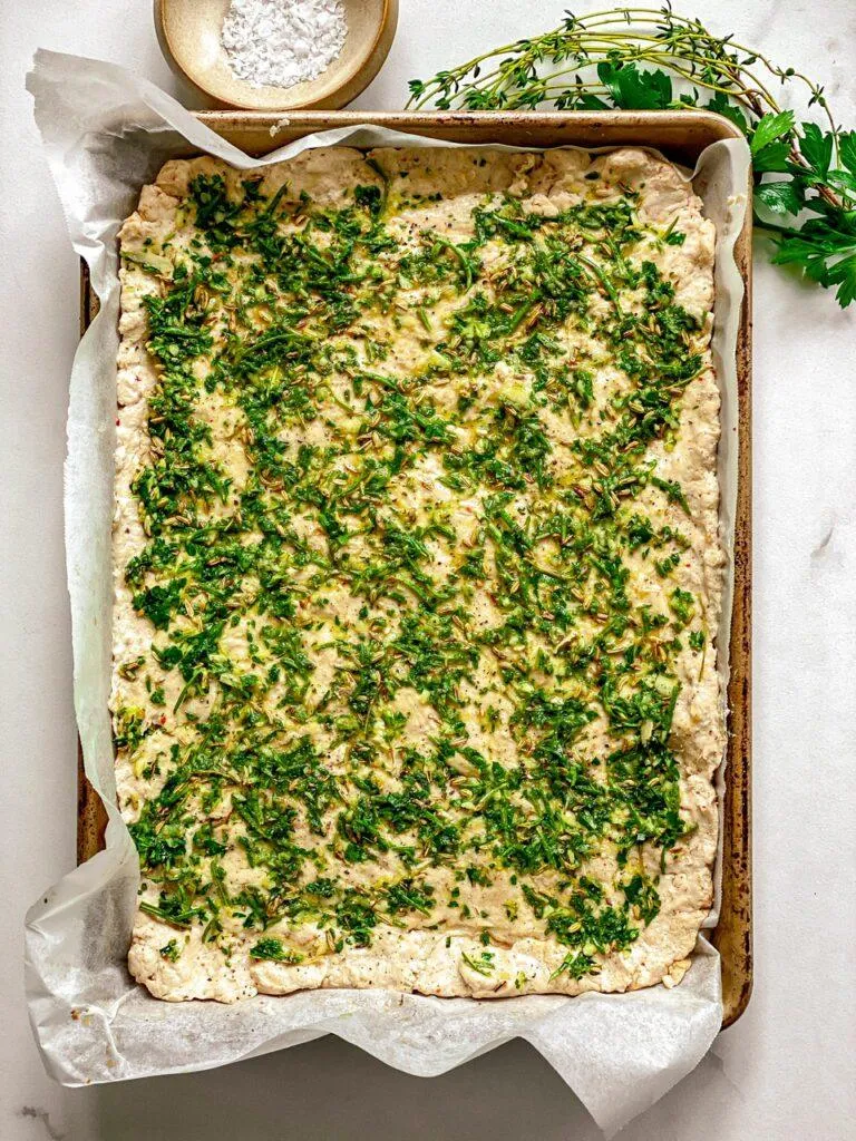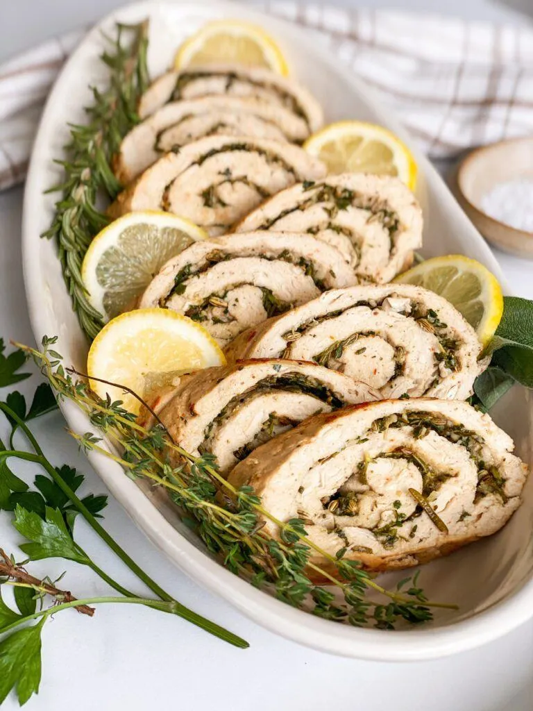 You can buy so many vegan poultry substitutes now for a holiday main course but with a quick hack, you can create your own show-stopping centerpiece for your holiday meal. It’s a simple but stunning take on a roulade or a dish cooked or served in the form of a roll. Fresh herbs make all the difference here, so invest in some as they can last quite a while in the fridge and are a great garnish to make your dishes festive.