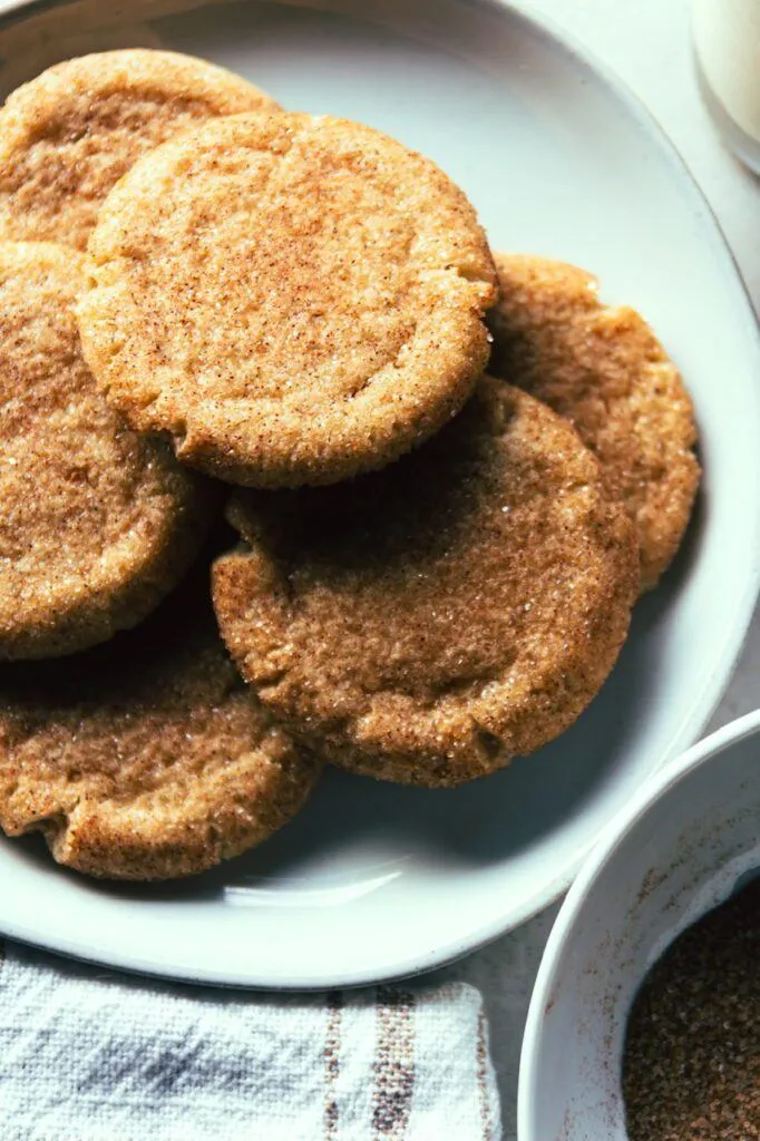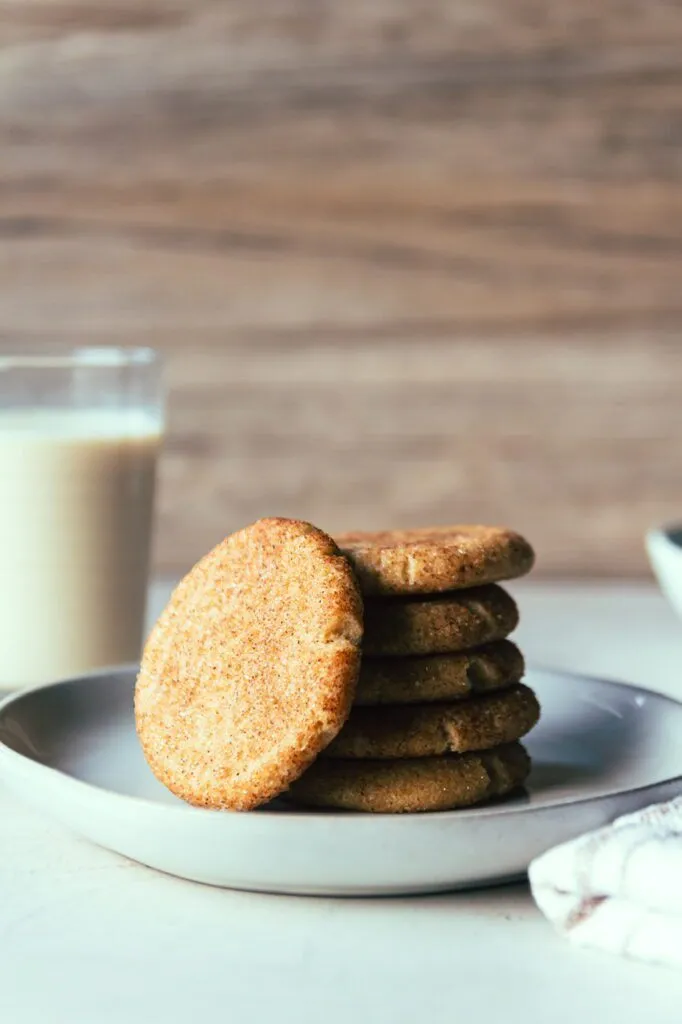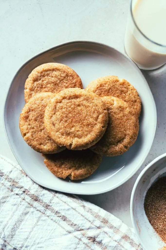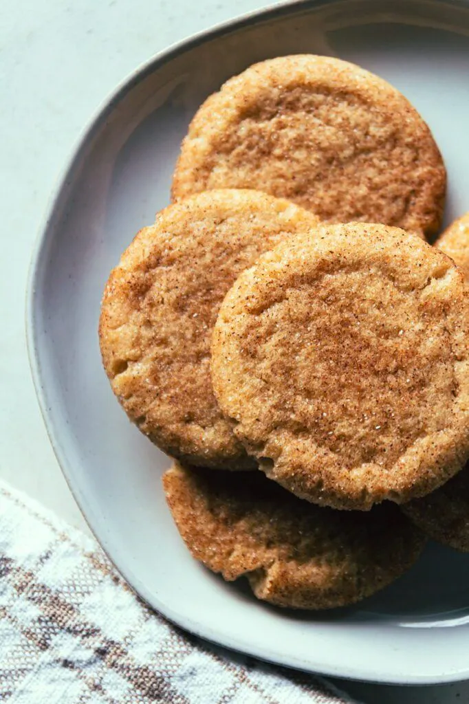 Snickerdoodle cookies are a classic American cookie that are soft, pillowy and chewy with a coating of cinnamon sugar and although not the most show stopping of cookies, are a favorite amongst cookie lovers. My vegan version hits all those classic notes but I have some tricks and tips for making the perfect snickerdoodle that I’ll share with you!
