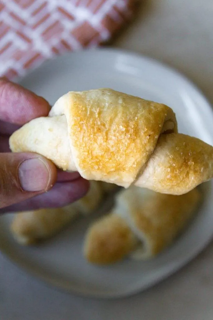 Easy and delicious! I added brushed with almond milk before baking. I added a glaze on top with sprinkles on half and almond slices on the others. It reminded me of a bear claw, soo yummy!