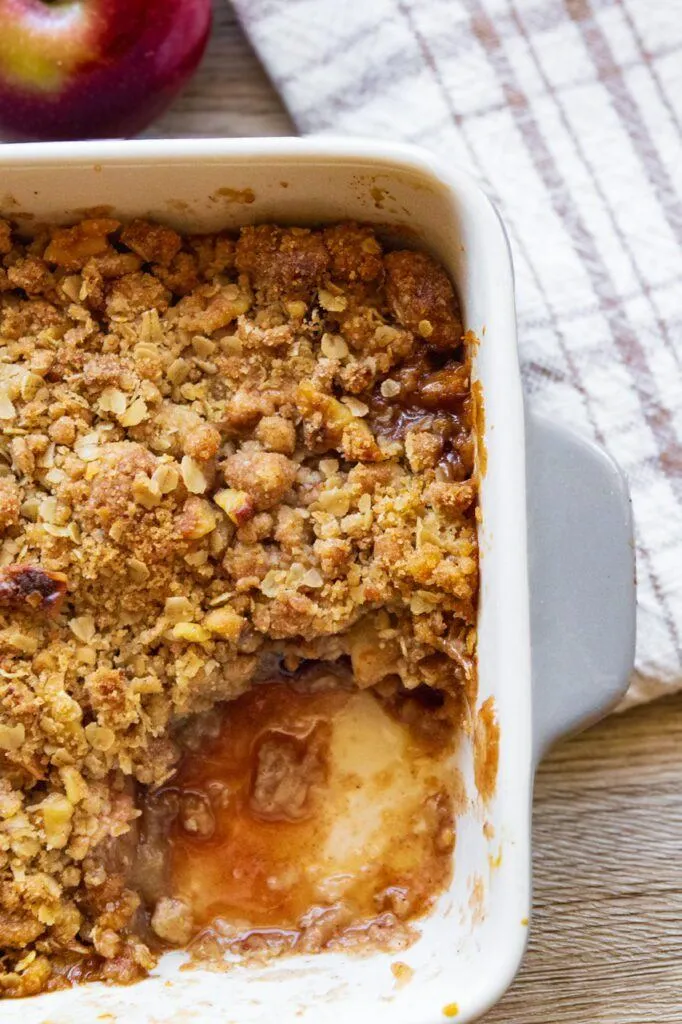 - Can I make multiple smaller crisps? Yes! You can mix all of the filling ingredients in a large bowl then divvy it up between two smaller baking dishes or even as individual servings in ramekins then add the topping to each. Baking times will vary for smaller portions so keep and eye on them if not making one large crisp.