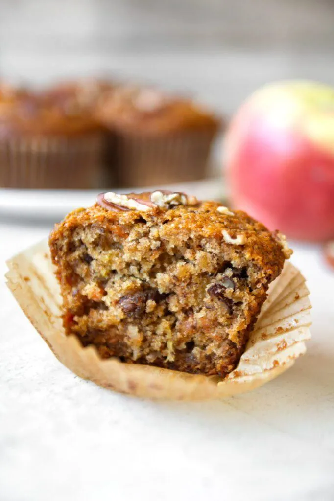 - Grate your produce. Well grated carrots and apples blend better into the batter and help keep the muffins moist. Use the side of a box grater or a fine shredding disc on a food processor.