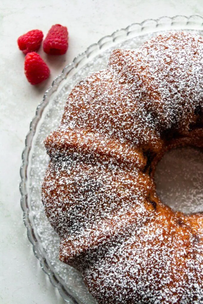 - Sprinkle powdered sugar when the cake is fully cool so it doesn’t melt. Same if using a glaze. Makes sure the cake is completely cool.
