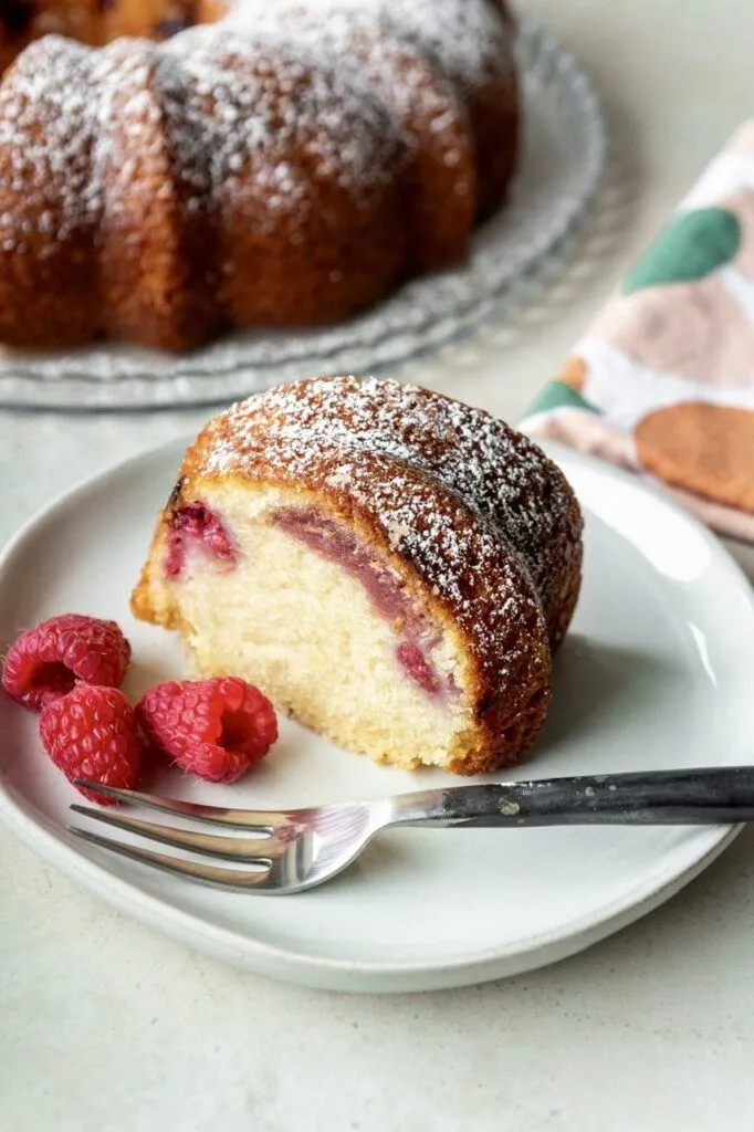 - Raspberry layer: we’re adding a layer of raspberry batter flavored with pulverized freeze dried raspberries then layering fresh raspberries on top of that before adding the rest of the lemon batter. It creates an explosion of raspberry flavor!
