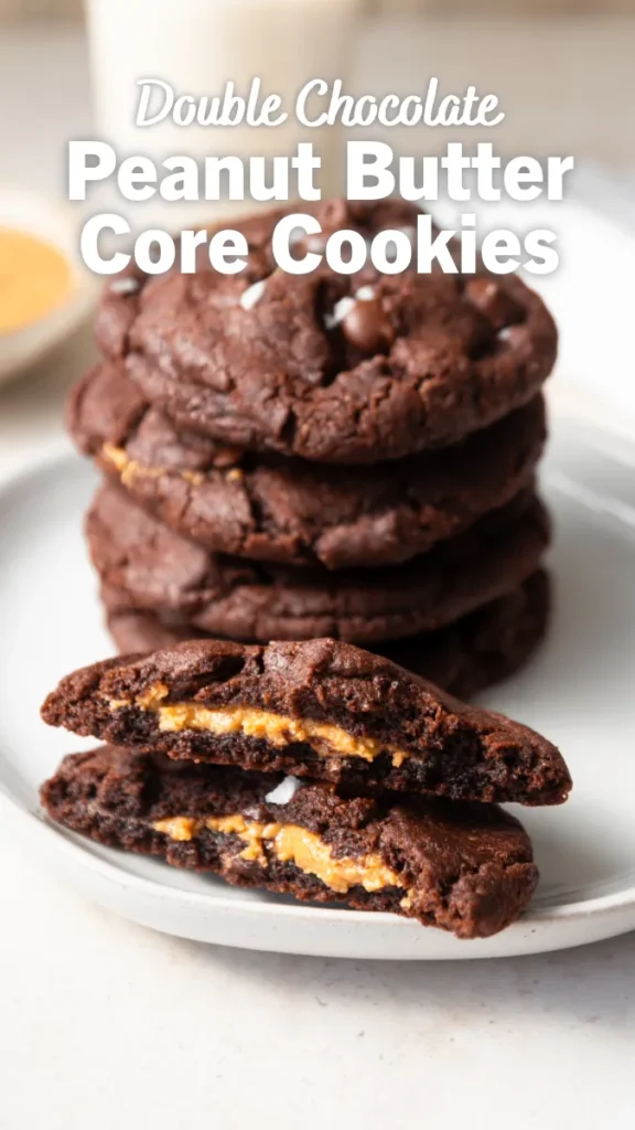 These Double Chocolate Peanut Butter Core Cookies aren’t just vegan—they’re downright decadent. They’ll satisfy chocolate lovers, peanut butter fans, and anyone who loves a sweet surprise tucked inside a chewy cookie. Make a batch. Or two. You won’t regret it!