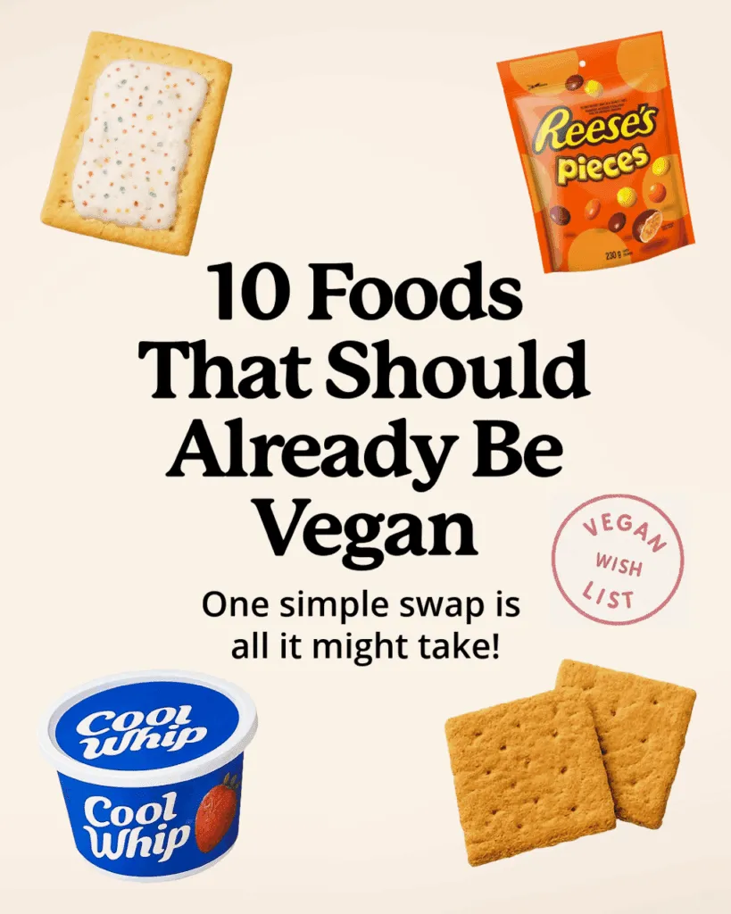 We’re not asking for a total food revolution (though we wouldn’t complain), just some smart swaps that could make beloved products accessible to millions more people. Because if the flavor and texture stay the same, why not make them vegan?