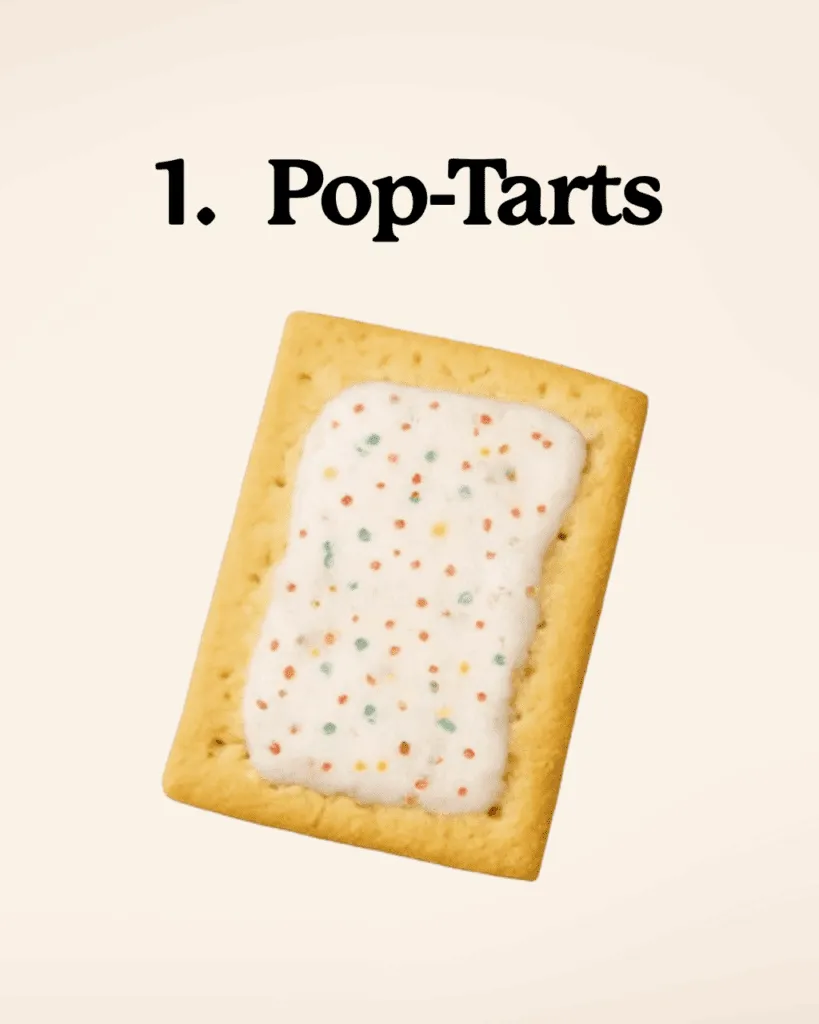 Childhood breakfast nostalgia, but with a catch. Most flavors contain gelatin in the frosting. Swap the gelatin for a plant-based thickener like agar agar or aquafaba (the liquid from cooked chickpeas), and boom, we could have vegan frosted Pop-Tarts that more could enjoy.