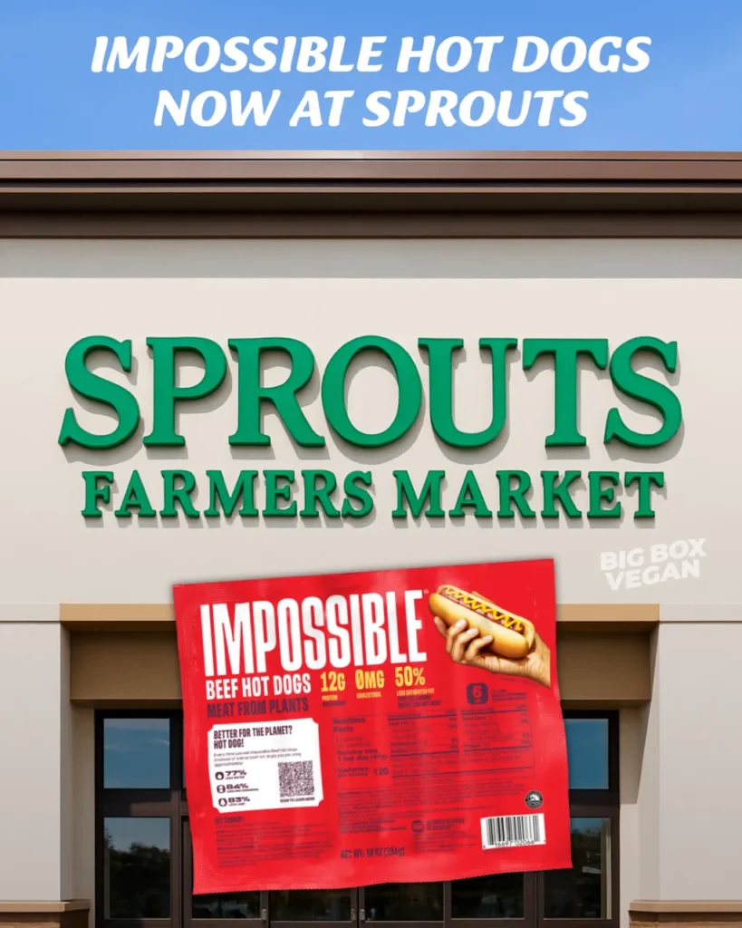 Until now, Impossible Beef Hot Dogs and Steak Bites were only available at select regional retailers and hard to find but starting this month, you can find them nationwide at Sprouts Farmers Market locations across the U.S. Although there’s not a Sprouts in every state, they are a nationwide retailer and this marks the first time they have rolled out at a major grocery chain.