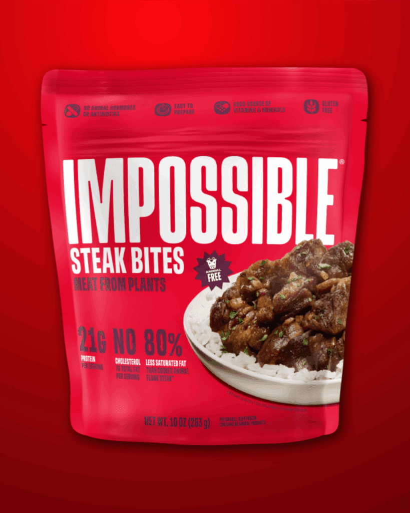 Like the hot dogs, Impossible Foods unveiled its inaugural plant-based steak product, Impossible Steak Bites, at Natural Products Expo West in Anaheim, California this past March, 2025. This marks their first venture into the steak category and I got try them and thought they were great. The bites are pre-cooked, pre-seasoned, and have a tender, fine-grained texture that mimics real steak.